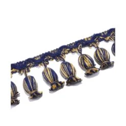 La borla tiene una longitud de 32cm y un diámetro de 5cm. De los laterales de la misma salen dos cordones dobles de 45cm de largo cada parte; 90cm en total.
