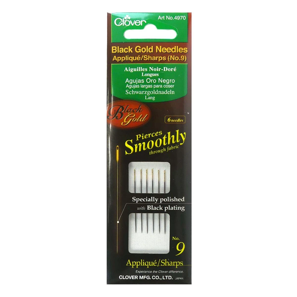 Pack de 6 agujas negras con el ojo dorado para coser largas. Disponible del tamaño nº9, nº10 y nº12. Seleccionar el tamaño de la aguja a continuación.