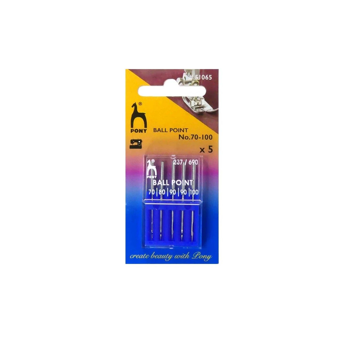 Agujas universales que lleven todo el talón de la aguja redondo. Cada tejido requiere un tipo o grosor de aguja diferente, siendo las de número más bajo las más finas y por tanto para tejidos delicados, y las de número mayor las más gruesas, para tejidos fuertes.