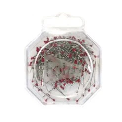 Paquete de 200 alfileres con la cabeza de pera en color rojo y 26mm de longitud con 0,54mm de grosor cada uno.