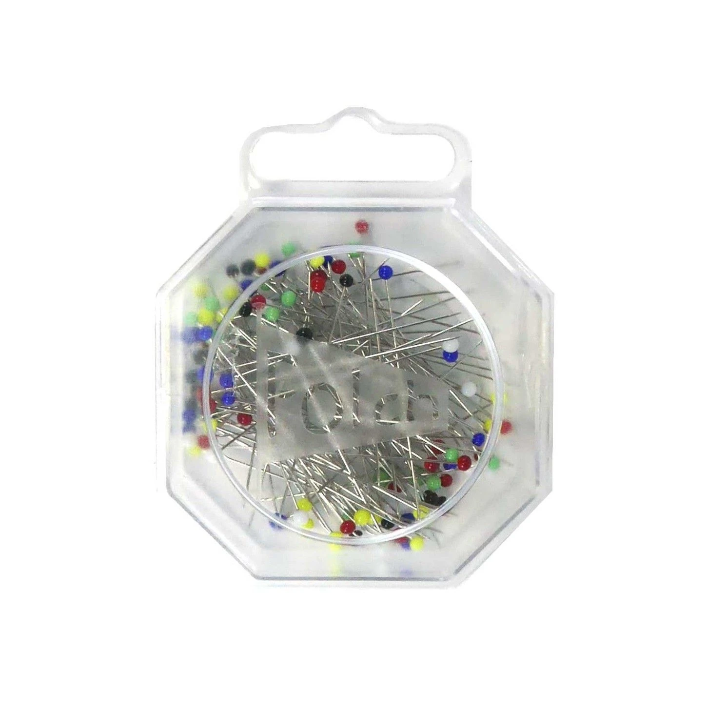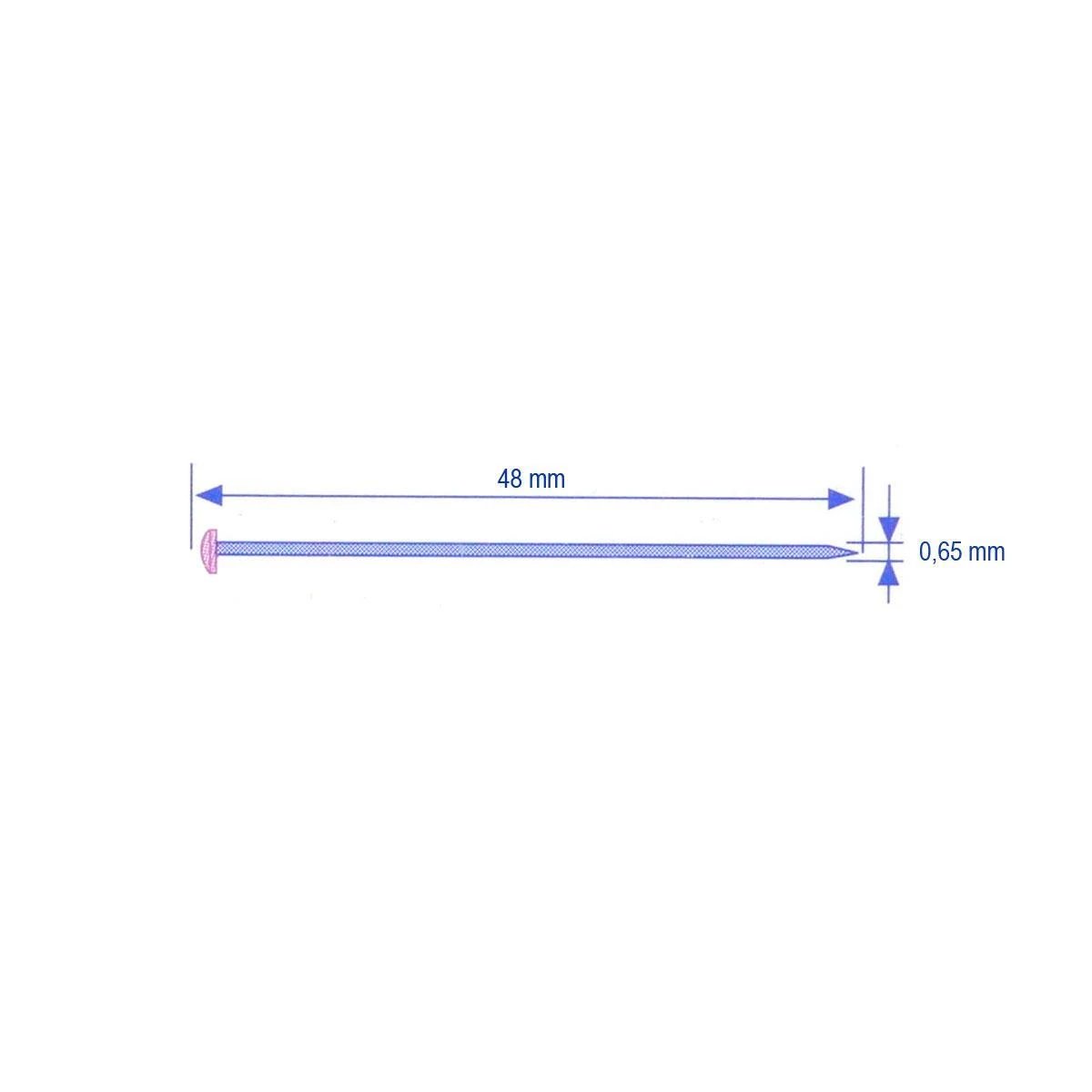 Paquete de 100 alfileres con la cabeza de cristal en colores y 48mm de longitud con 0,65mm de grosor cada uno.