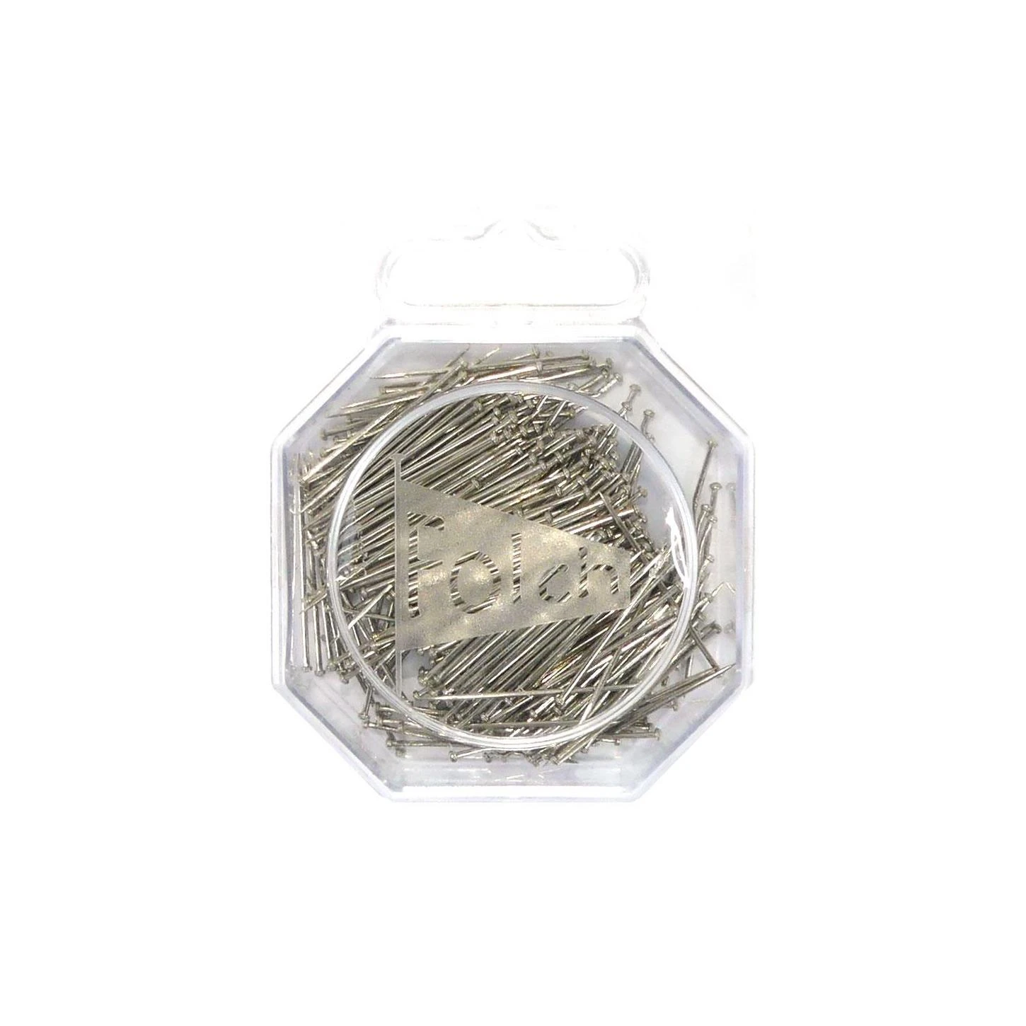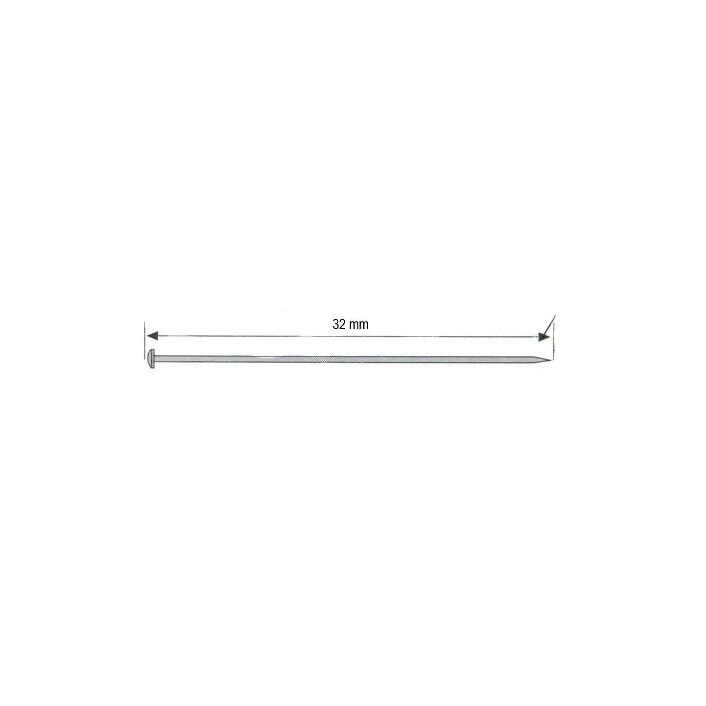 Caja de 50gr de alfileres de hierro niquelado con 32mm de longitud y 0,90mm de diámetro cada uno.