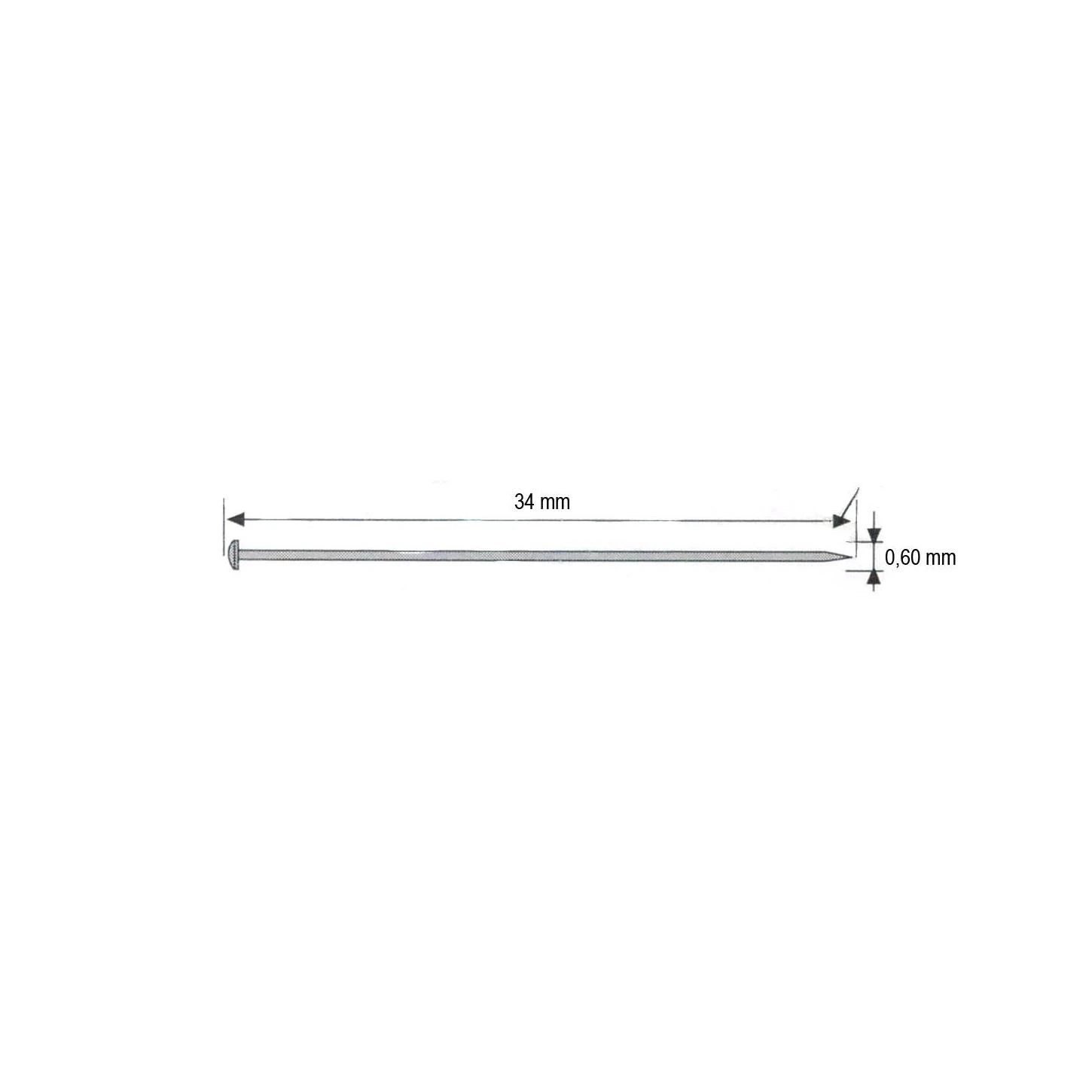 Caja de aproximadamente 50gr de alfileres en acero niquelado con 34mm de longitud y 0,6mm de diámetro cada uno.