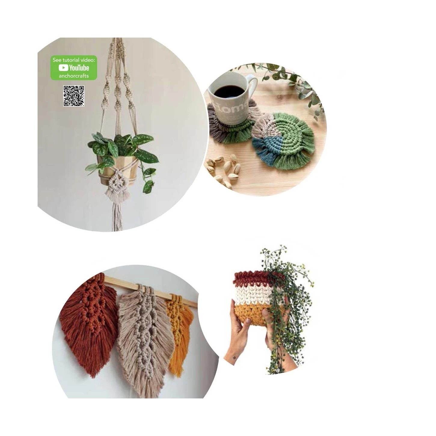 Gracias a su composición, Anchor Crafty también se puede desenredar fácilmente para conseguir flecos con textura, lo que lo hace perfecto para la técnica de macramé. Especialmente adecuado para proyectos de decoración del hogar, colgantes de plantas, adornos de pared, caminos de mesa, marcadores de platos, posavasos, llaveros y otros proyectos.