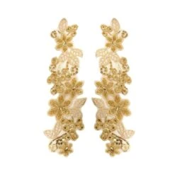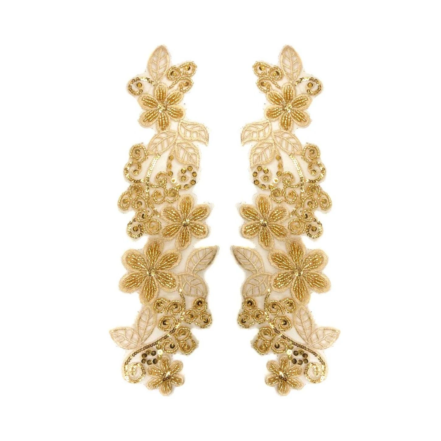 Se trata de la pareja, aunque puedes usarlas de manera individual. Realizada con hilo de rayón dorado sobre tul.