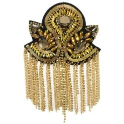 Aplicación para coser de metal y strass con diseño en hombrera. Realizada sobre fieltro, por lo que su base permitirá ser cosida o pegada en caso necesario.