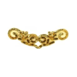 Aplicación termoadhesiva en forma de filigrana con lentejuelas y rocalla. De dimensiones 7cm de alto y 19cm de largo. Disponible en oro y plata. Seleccionar el color deseado a continuación.