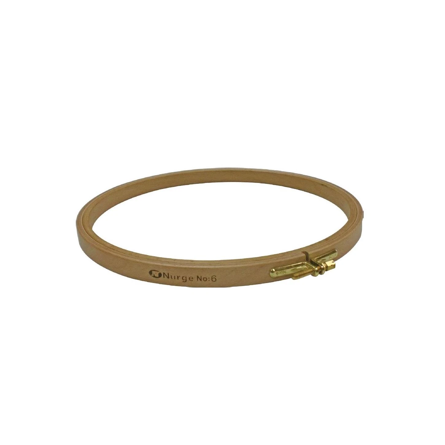 Aro para bordar de madera de primera calidad con doble circunferencia interior. Con cantos o bordes redondeados y tornillo de presión para ajustar la tela.