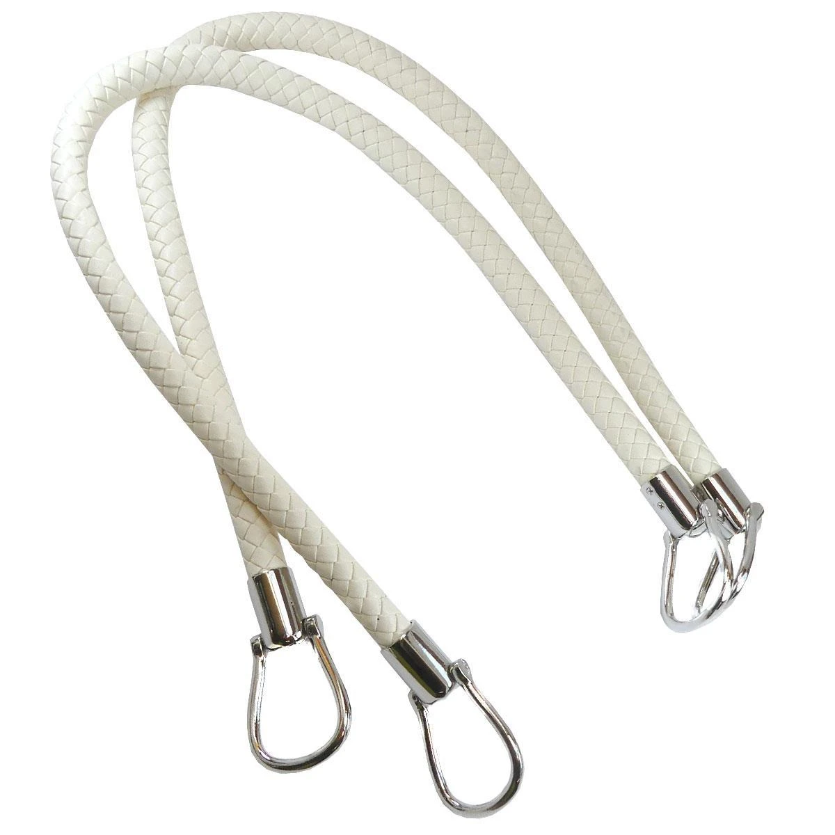 Dos asas para bolso realizadas con imipiel y terminales en plata con anillas, de 58cm de longitud cada asa y 1,2cm de diámetro de cordón. Disponible en varios colores. Seleccionar el color deseado a continuación.