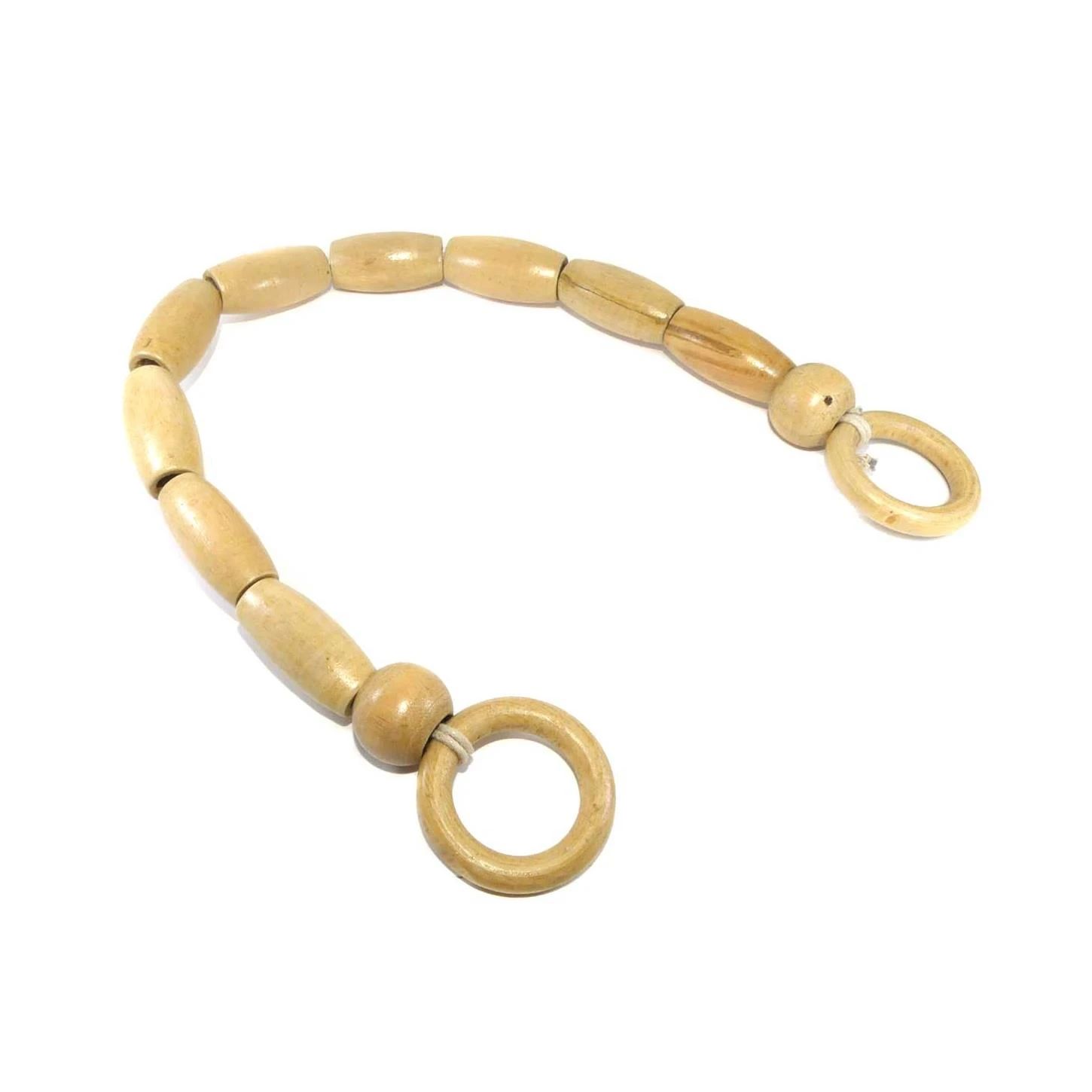 Dos asas para bolso realizadas con piezas de madera con remates de anilla también de madera de 3cm de diámetro. Disponible en dos colores. Seleccionar el deseado a continuación.