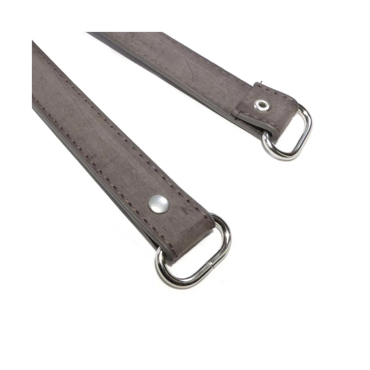 Dos asas para bolso realizadas con cinta de polipiel gruesa y acabado mate, con anillas ovaladas plata en sus extremos. De 60cm de longitud y 2,2cm de ancho cada una. Seleccionar el color deseado a continuación.