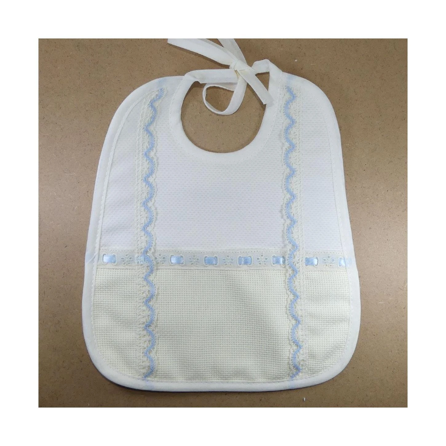 Para los más pequeños de la casa podrás utilizar este babero que puedes personalizar realizando un pequeño bordado en punto de cruz. Úsalo a la hora de comer, cuando le crezcan los dientes, etc. Muy suave y cómodo de poner.