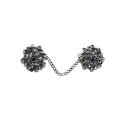 Broche metálico y piezas de strass, con pinzas como sujección sin necesidad de coser. Con precioso dibujo y una vez cerrado completa una longitud de 10,5cm. Tiene un ancho de 3cm y una cadena de unión entre parte y parte.