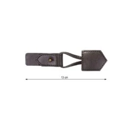 Broche de trenka o chamaco de imipiel con un remate rectangular biselado en pico con presilla y el otro rematado rectangularmente con cierre de pernito. Tiene una longitud de 13cm y un ancho de 3,2cm.