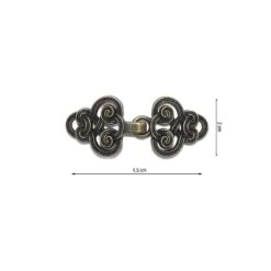Broche metálico con original diseño arabesco y una vez cerrado completa una longitud de 4,5cm. Tiene un ancho de 2cm.