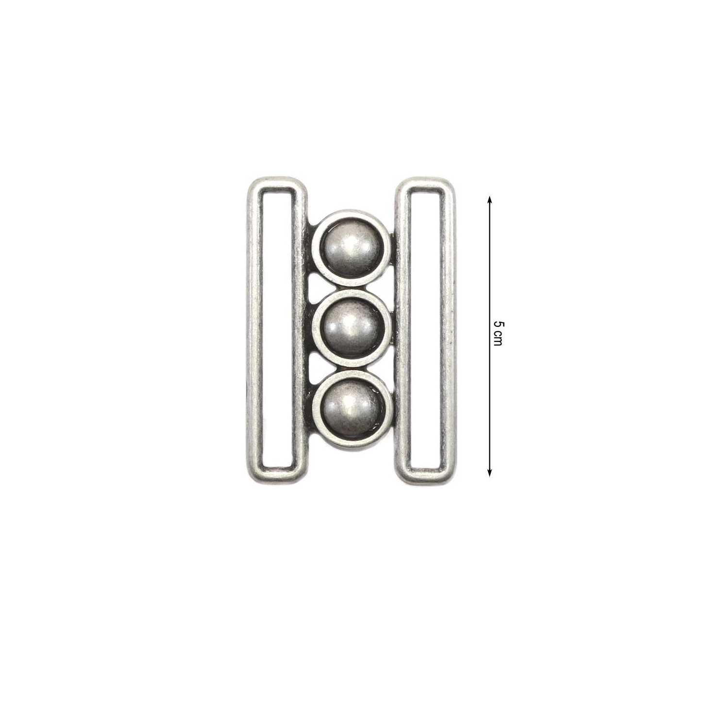 Broche especial para cinturón con forma rectangular y realizado en metal con 5cm de paso para cinta. De 3,5cm de ancho total.