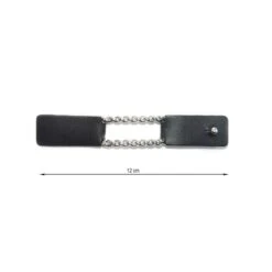 Broche de imipiel con un remate rectangular con cierre de pernito y una longitud total de 12cm y un ancho de 2cm.