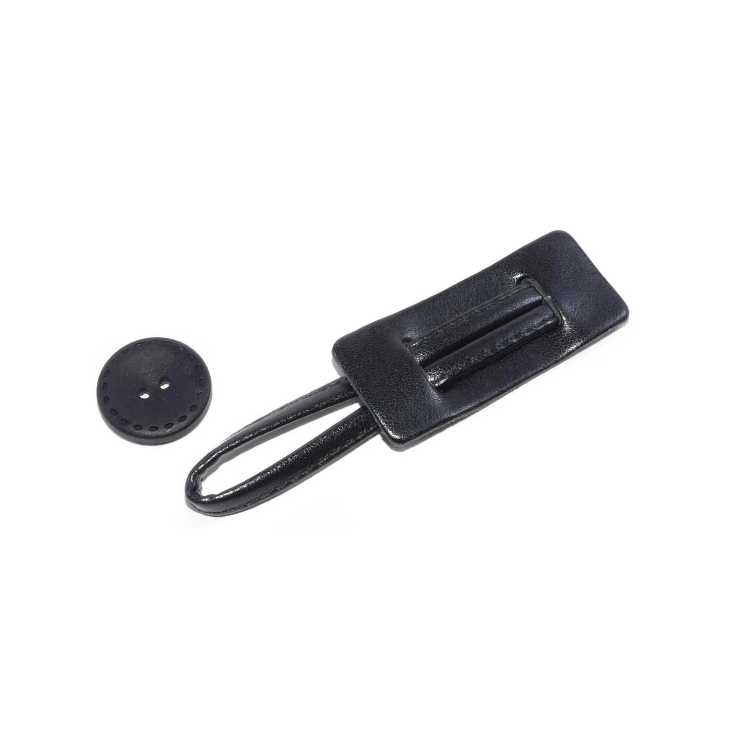 Broche de imipiel con un remate rectangular y botón para abrochar. De 2,5cm de alto y 9,5cm de largo.