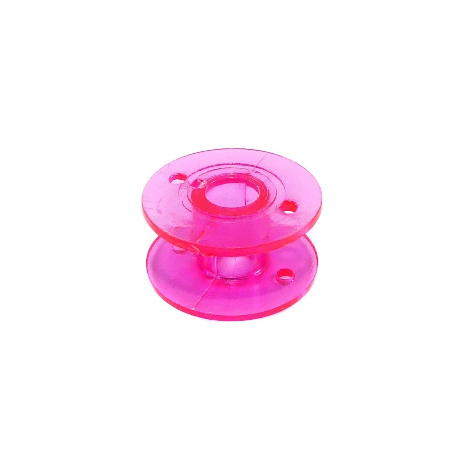 Caja plástica con un conjunto de 25 canillas para máquina de coser universales, realizadas en colores y con 1cm de altura, 2cm de diámetro y 5mm de diámetro interno.