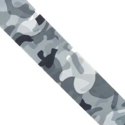 Cinta estampada de camuflaje o militar, de faya (tafetán) con superficie rayada y a doble cara. Realizada con 100% poliéster y de 5cm de ancho.