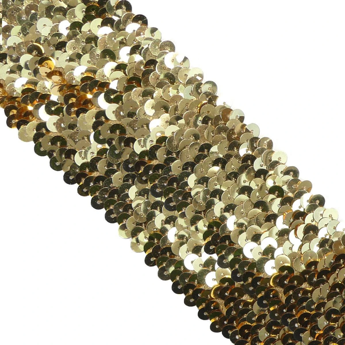 Original galón elástico compuesto por lentejuelas superpuestas con una gran elasticidad y suavidad en la cara interna, perfecto para decorar cualquier prenda, realización de cinturones, bajos, etc.