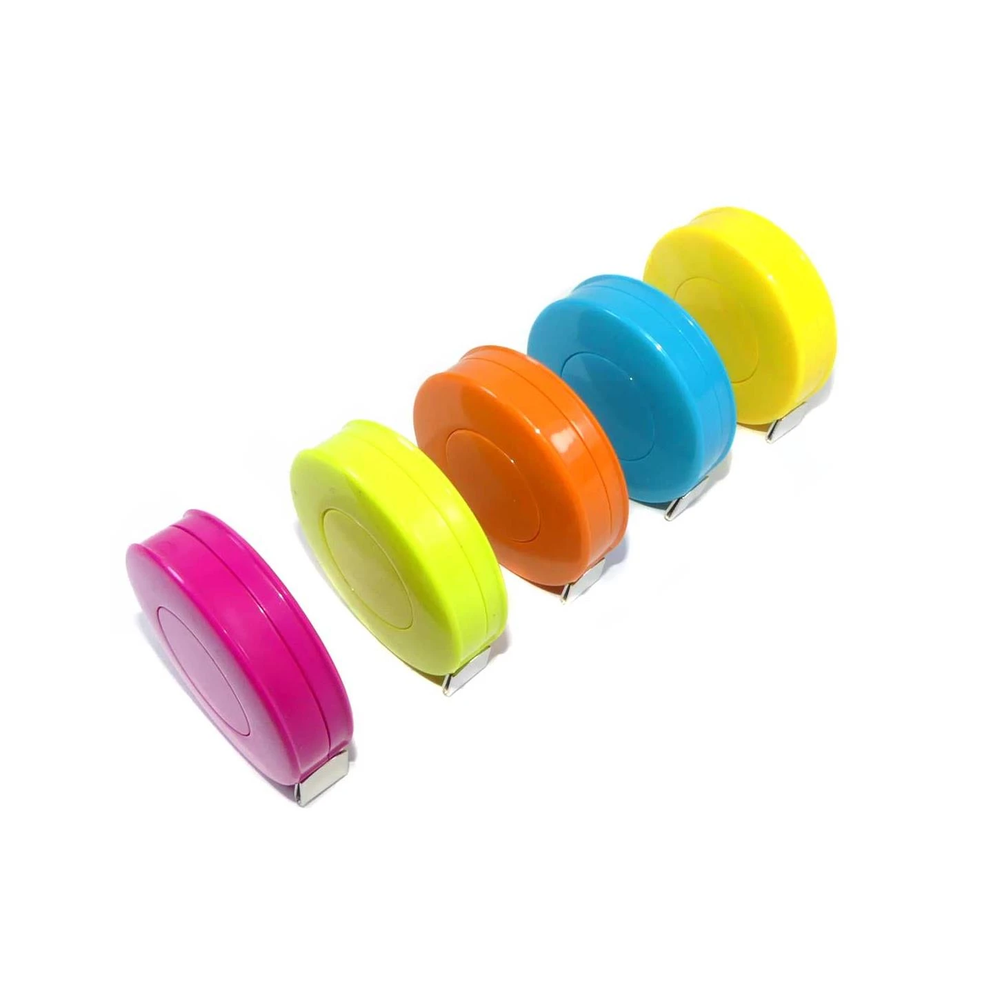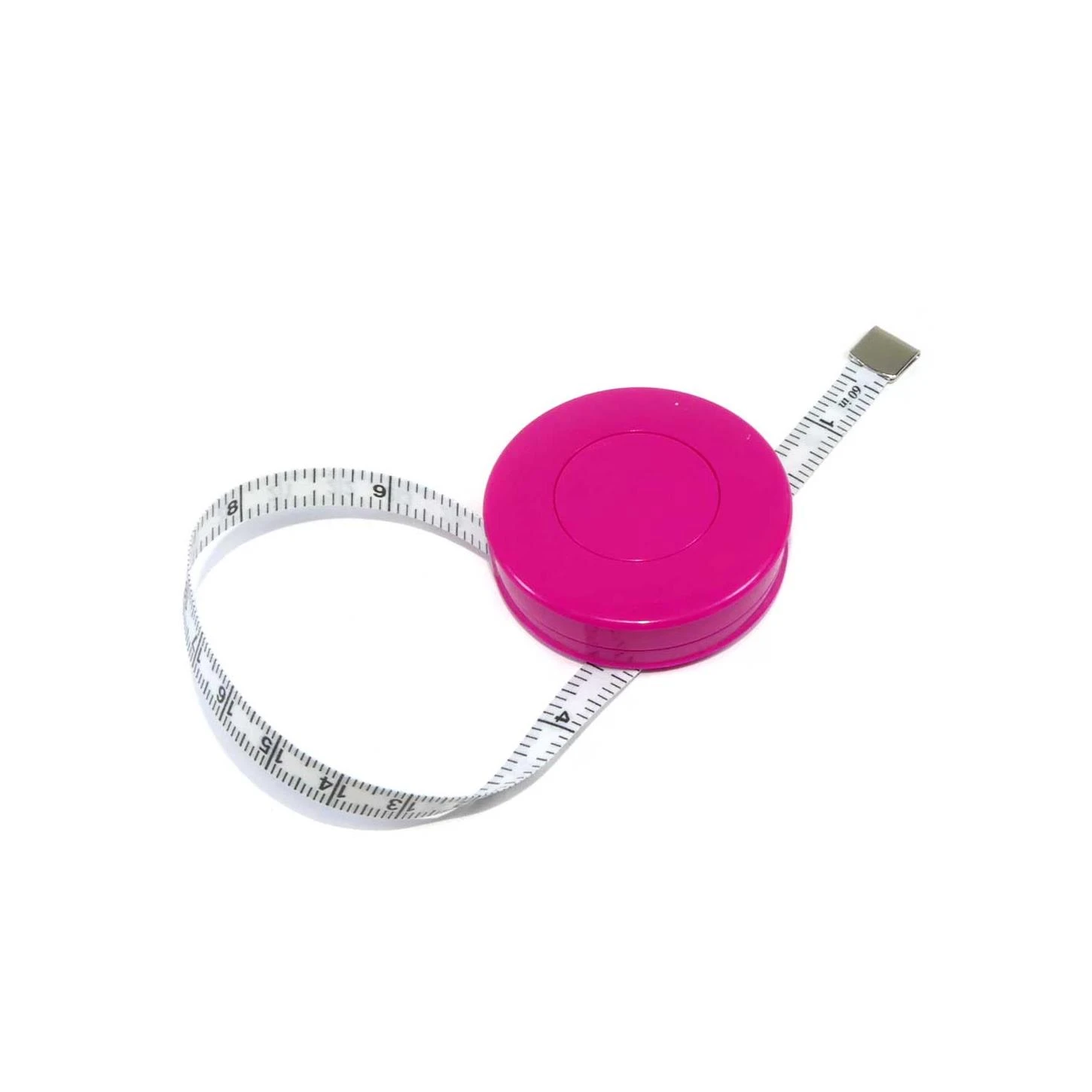 Cinta métrica automática o retráctil de colores, clásica que alcanza los 1,5m de longitud. Color blanco y a doble cara con medidas en centímetros y pulgadas.
