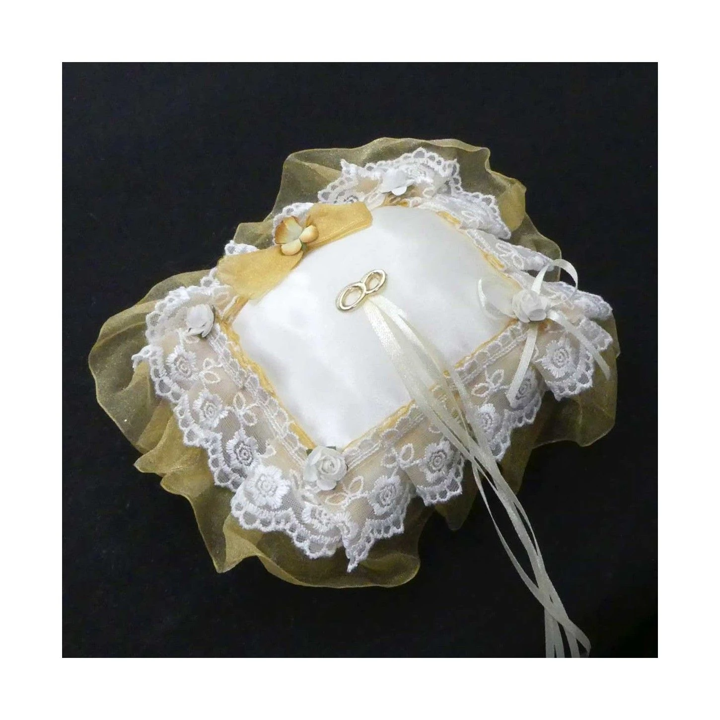 Un elemento decorativo y simbólico para ese evento tan especial como el día de tu boda. Podrás colocar las arras o anillos sobre el cojín para llevarlas hasta los novios.