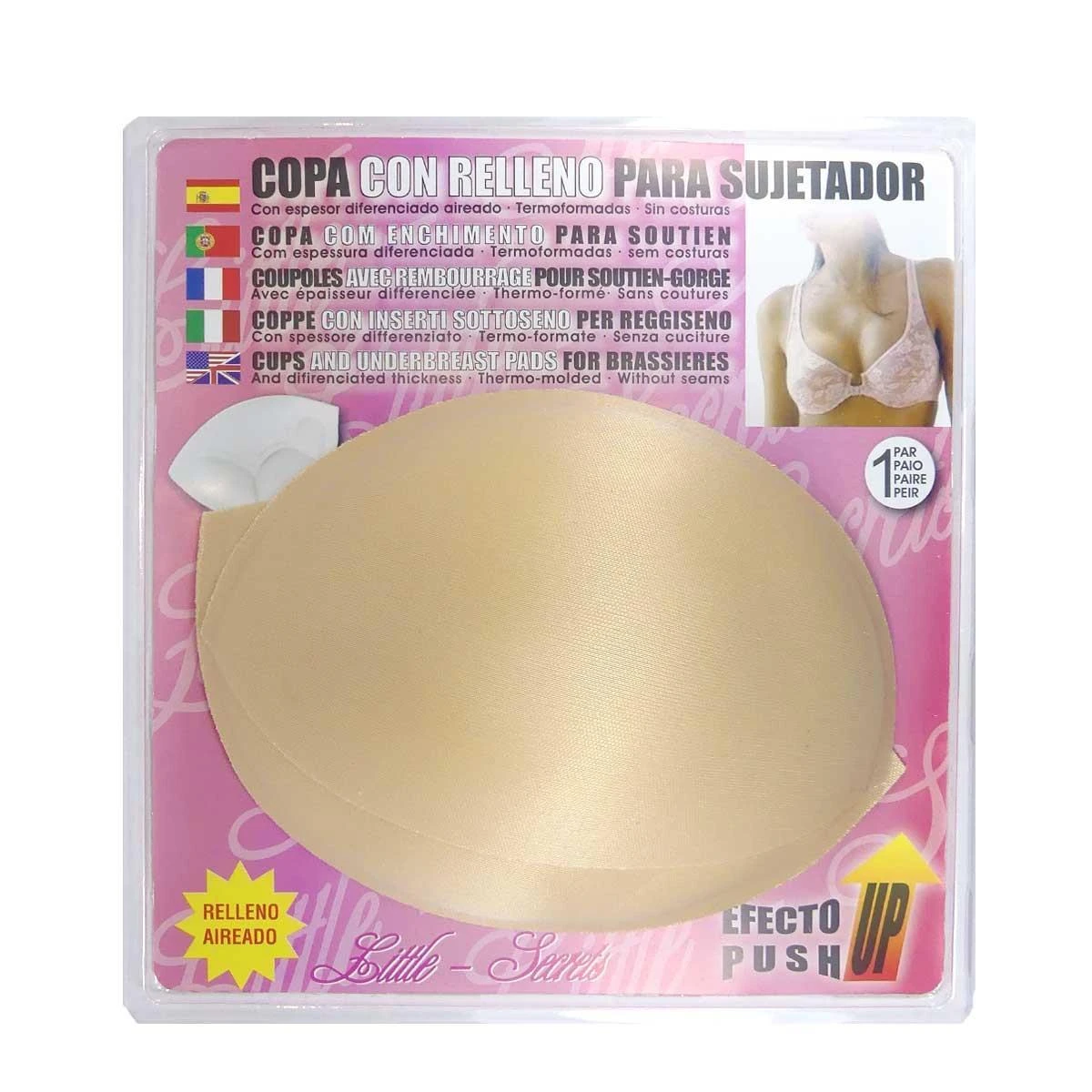 Copa con relleno aireado y efecto push up para sujetadores y prendas. Suaves, hipoalergénicas y transpirables en color beig y disponible en varias tallas: