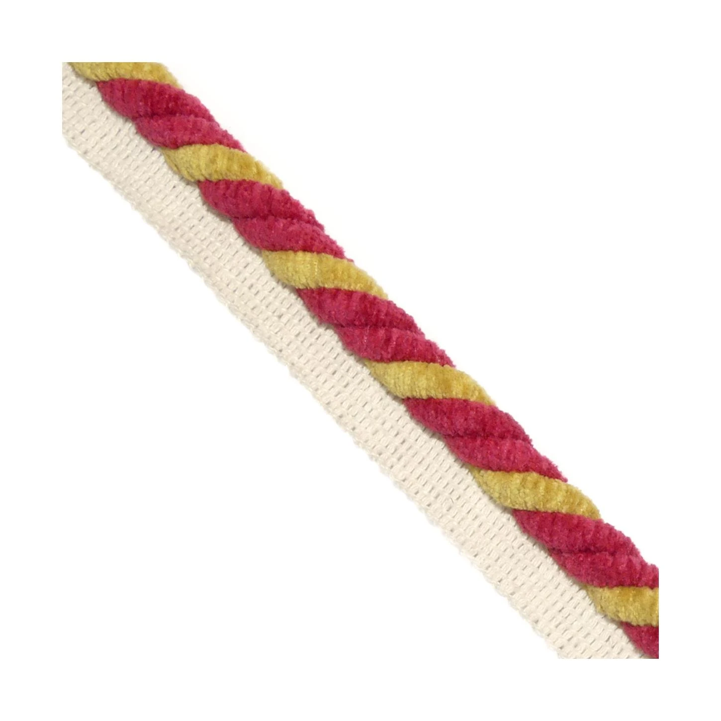 Cordón trenzado con pestaña. Fabricado en chenilla, un material de aspecto aterciopelado.