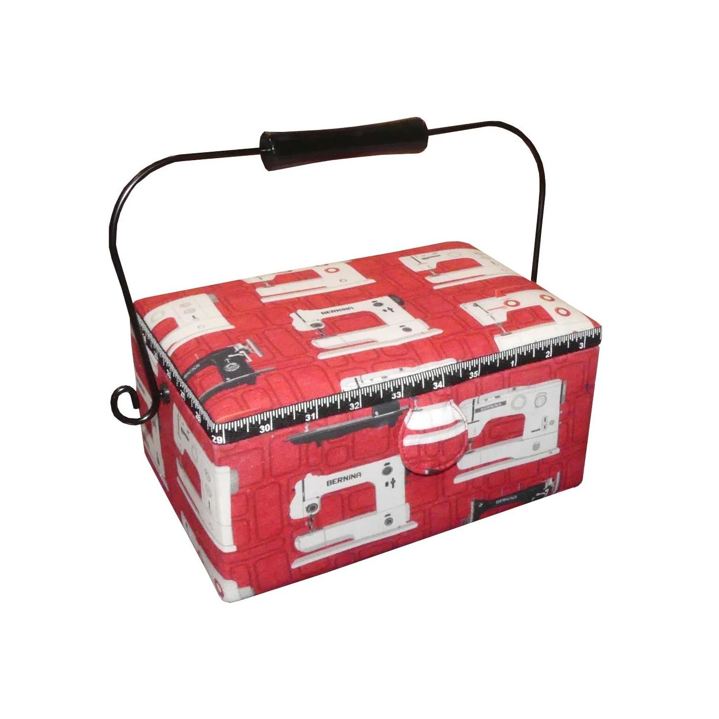 Incorpora asa para poder transportar fácilmente y en su interior encontraremos un gran espacio y una bandeja plástica para colocar los pequeños objetos de costura. Con un bolsillo y pequeño alfiletero incorporados en el interior de la tapa.