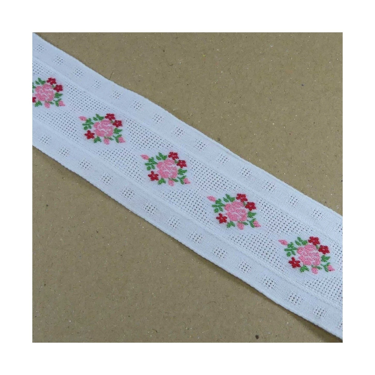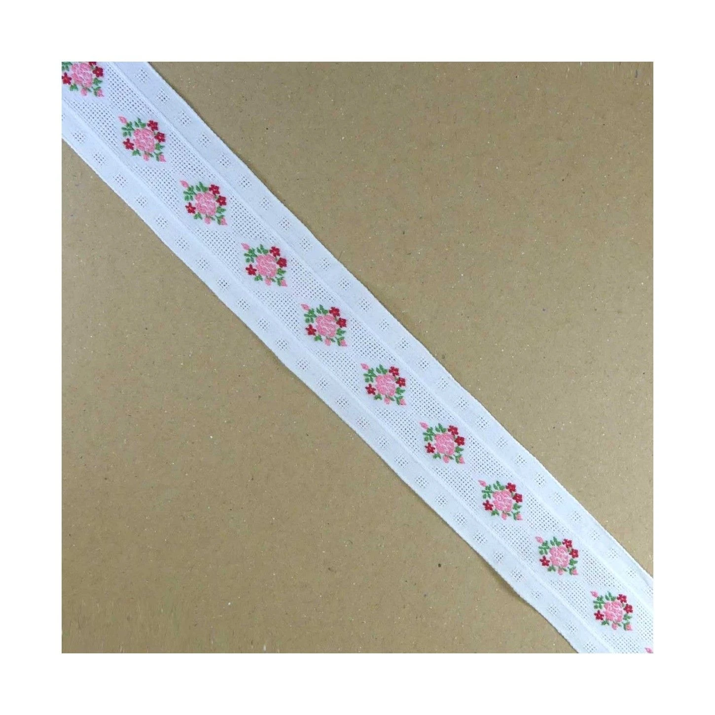 Este cubrecosturas de tejido calado con estampado de flores centrales a lo largo de todo su diseño conseguirá que tus proyectos sean únicos. Tiene un estampado a color que realzará y cubrirá la costura que desees de manera fácil.