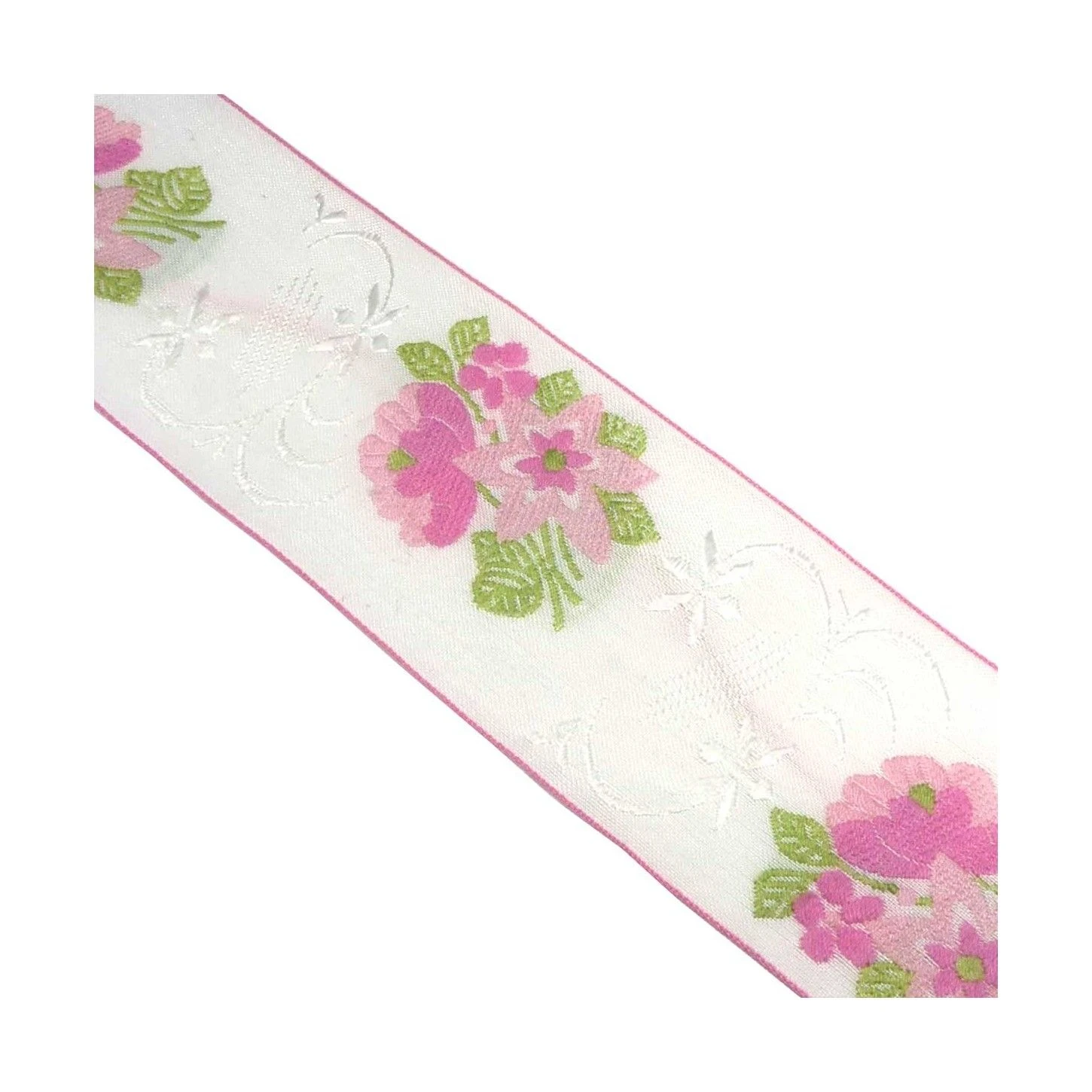 Este cubrecosturas con estampado de flores grandes en tonos rosas sobre fondo blanco conseguirá que tu diseño tenga un acabado excelente. Tiene un estampado a color que realzará y cubrirá la costura que desees de manera fácil.