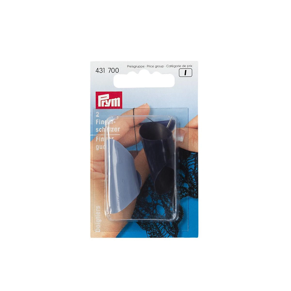 Dos dedales de material plástico, abiertos y adaptables a cualquier dedo, de 4cm aproximadamente de longitud total. Con dos tamaños diferentes.