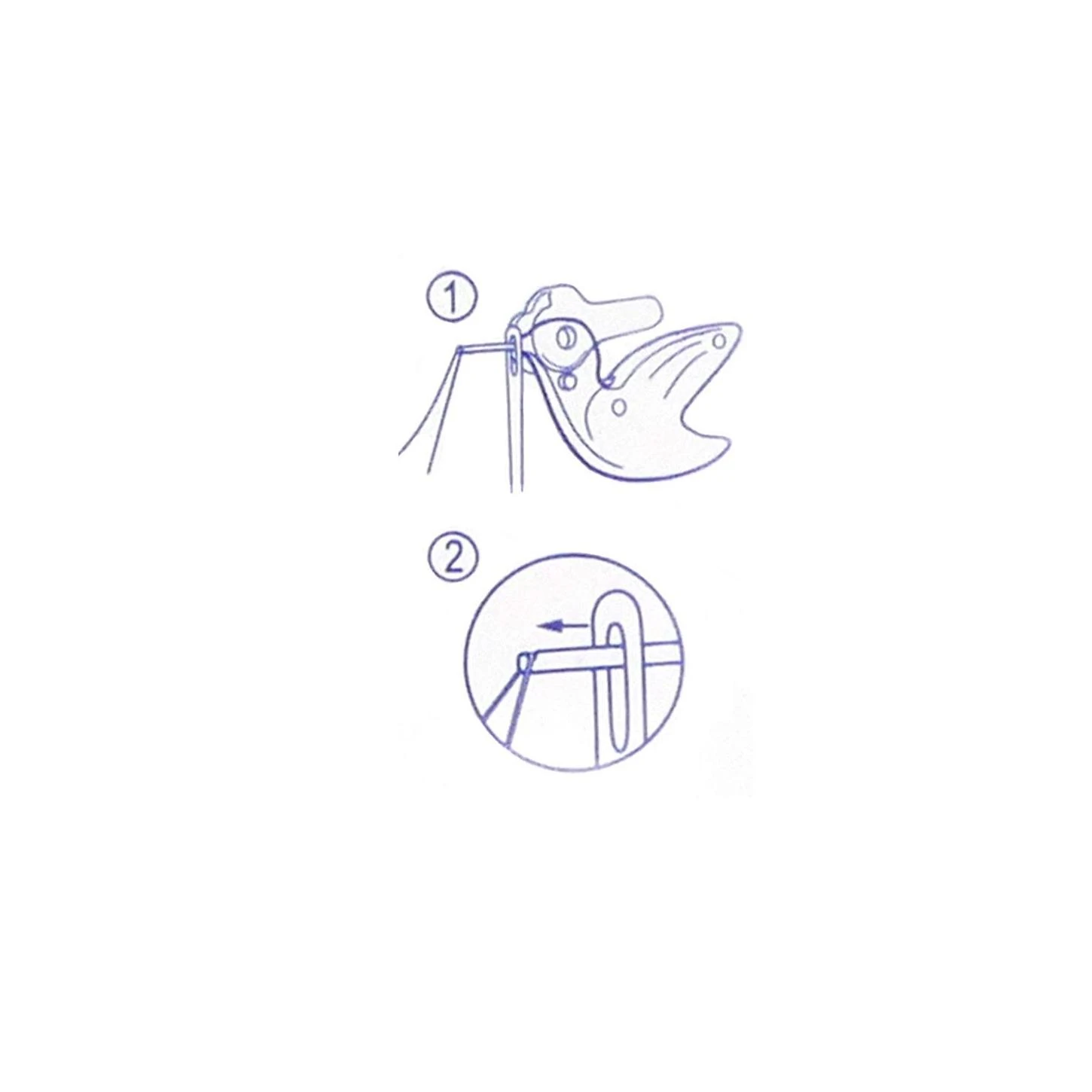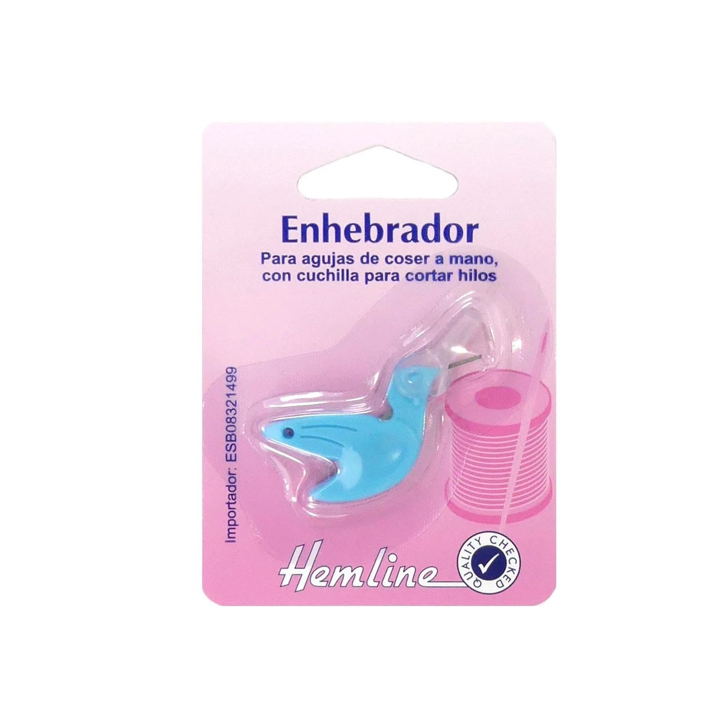 Enhebrador de aguja con forma de pájaro que gracias a su diseño permite localizar el hilo e introducirlo de modo sencillo y rápido en el ojo de la aguja.