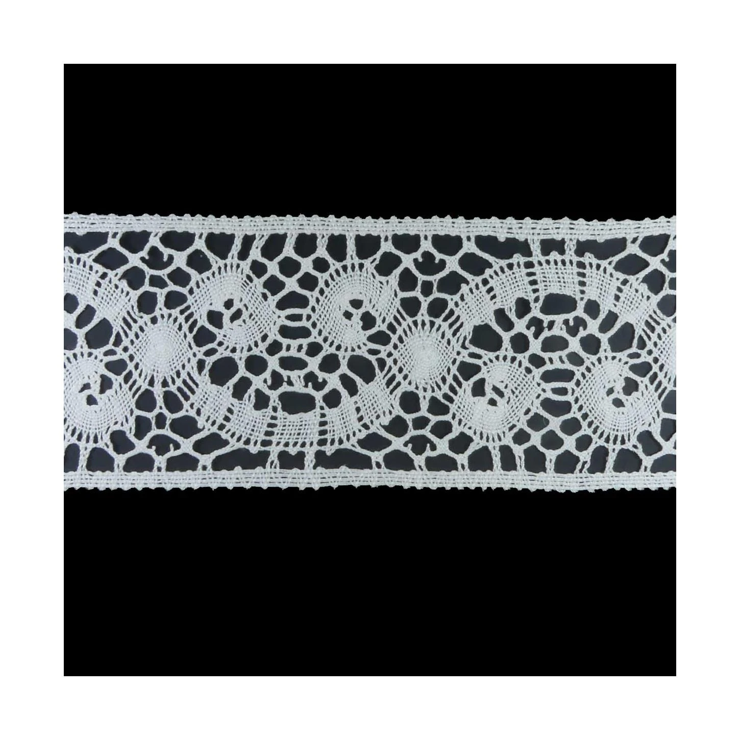 Entredós de bolillo de 7,5cm de ancho en color blanco con diseño de onda y óvalos.