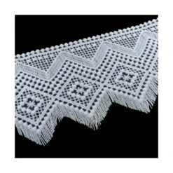 Entredós doble de tul bordado con diseño floral y entramado, de 4,2cm de ancho en color blanco roto. Forma parte del conjunto número 6.