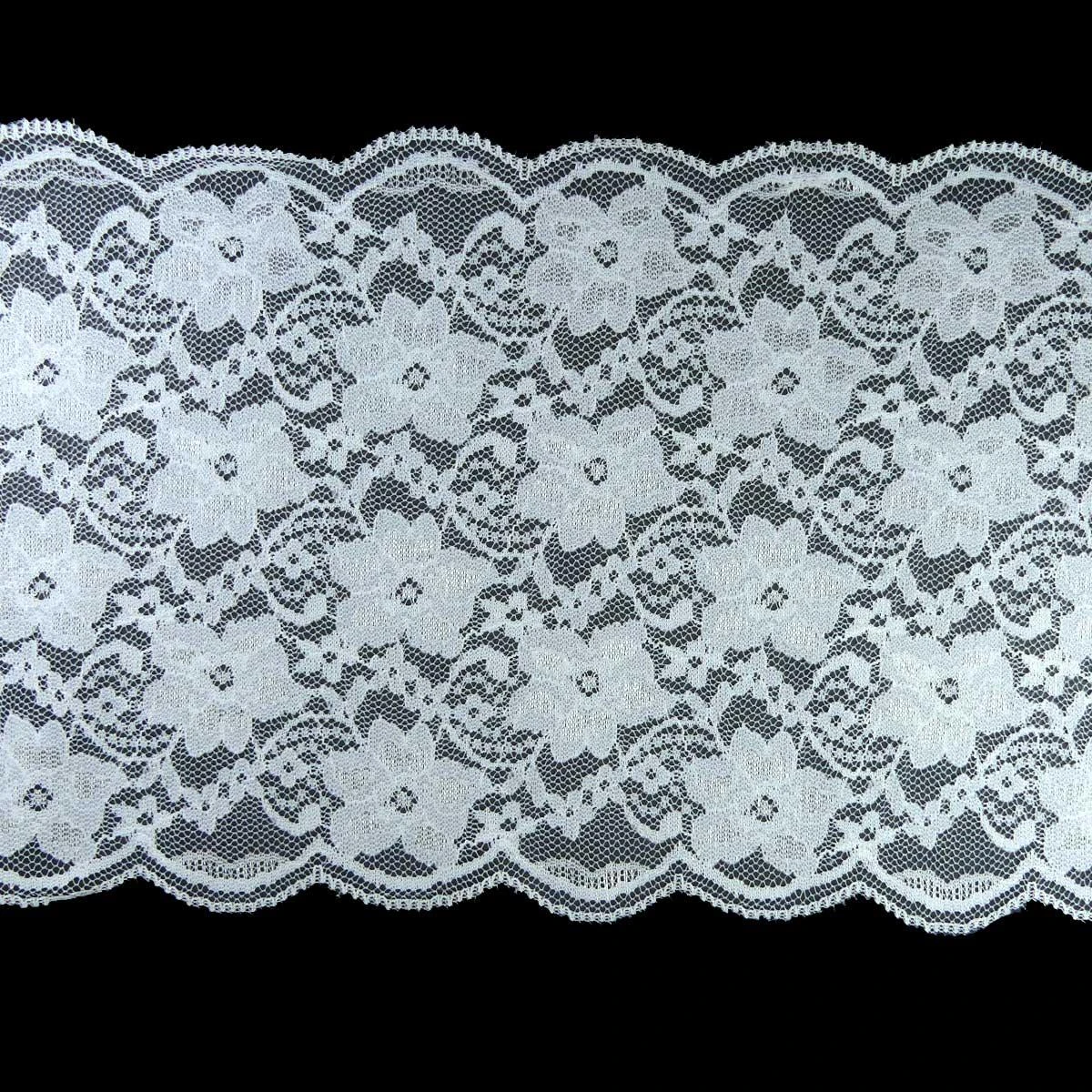 Entredós de nylón elástico, con una elasticidad media del 50%. De 16cm de ancho y muy suave al tacto. Puede lavarse sin problemas hasta los 40º, admite plancha y se recomienda no introducir en secadora.