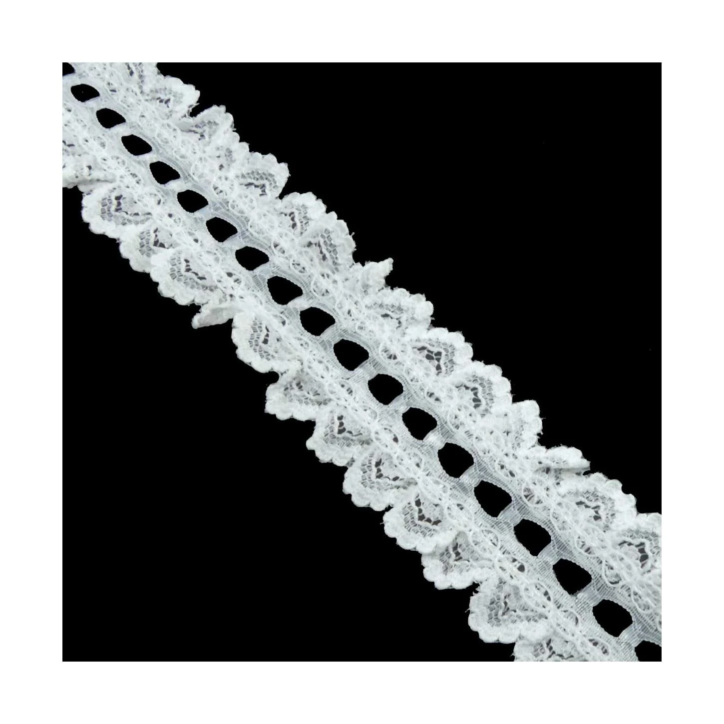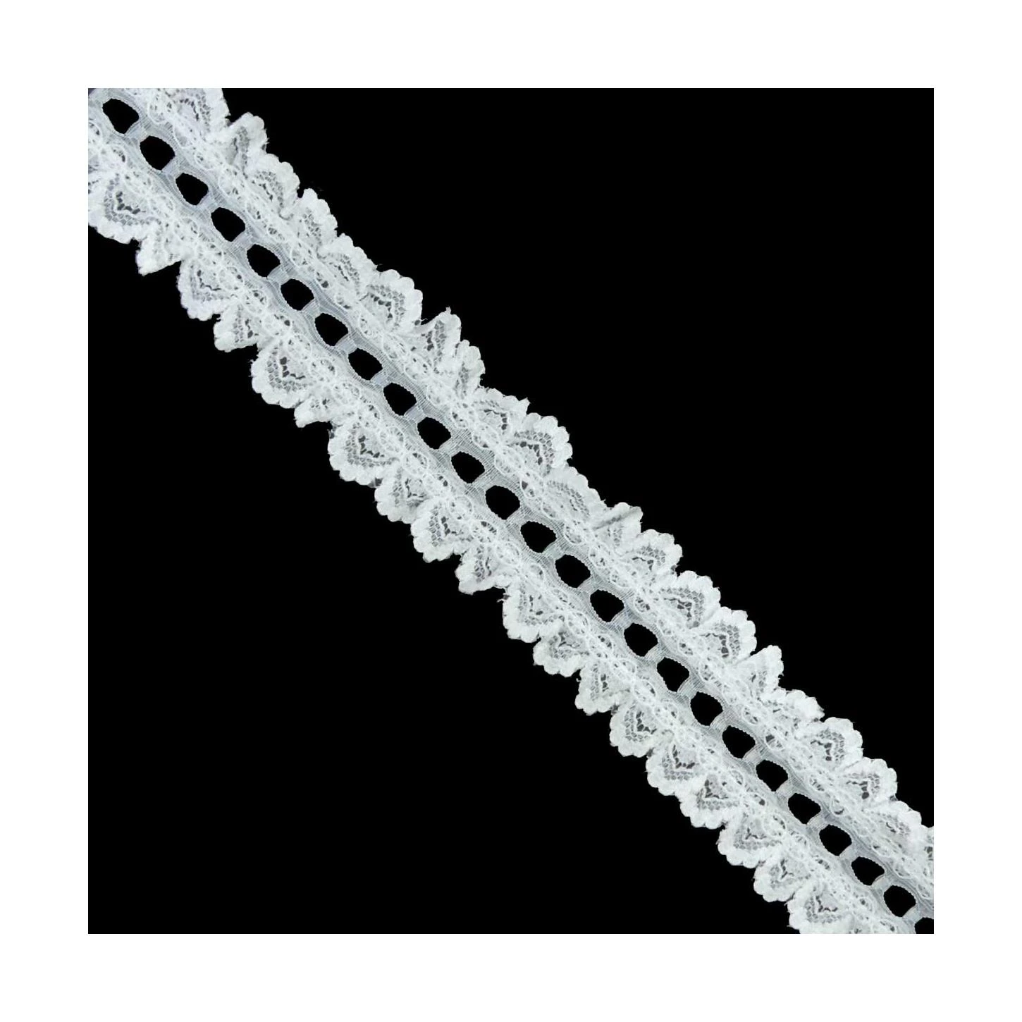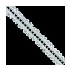 Entredós pasacintas fruncido de 3,5cm de ancho. Puede lavarse sin problemas hasta los 40º, admite plancha y se recomienda no introducir en secadora.