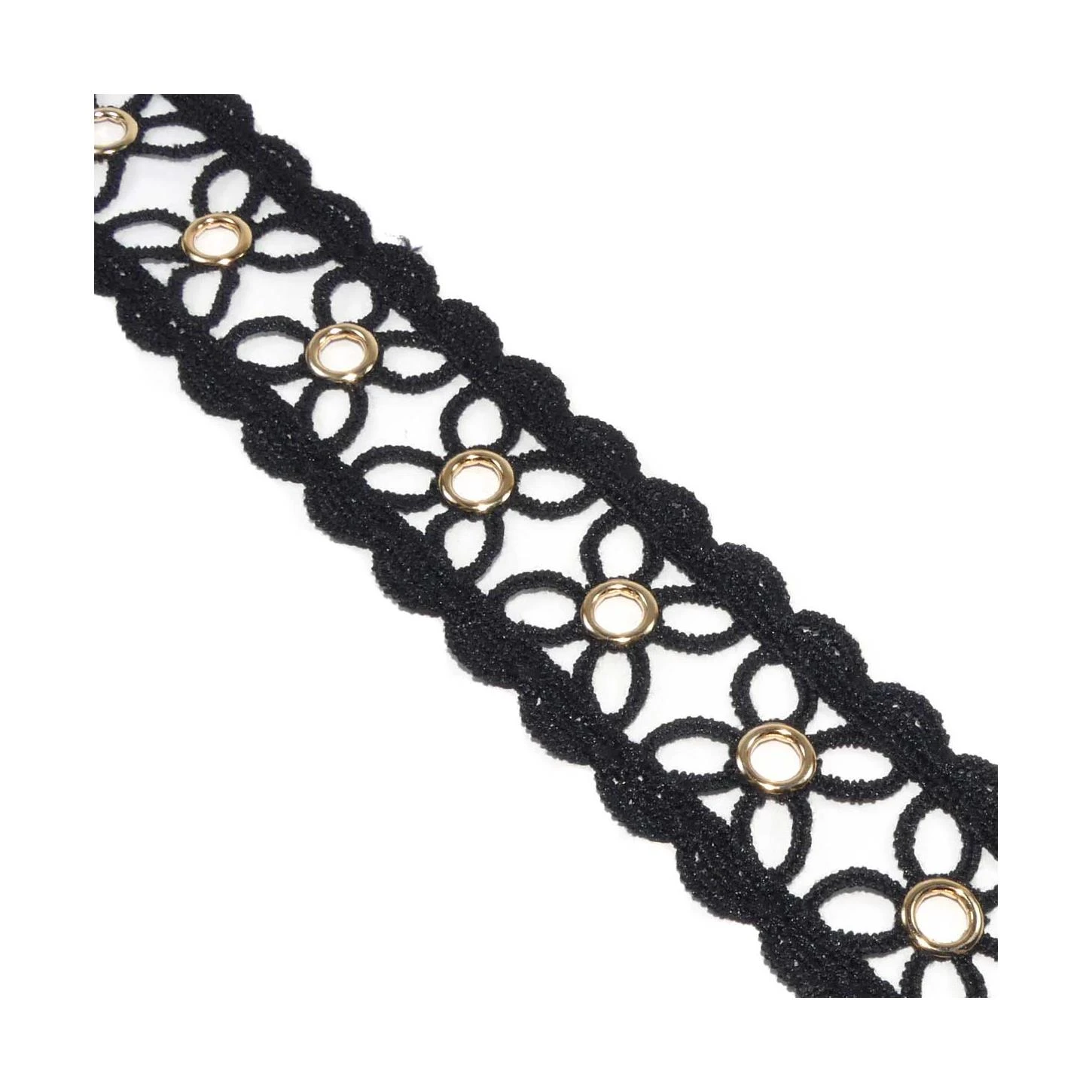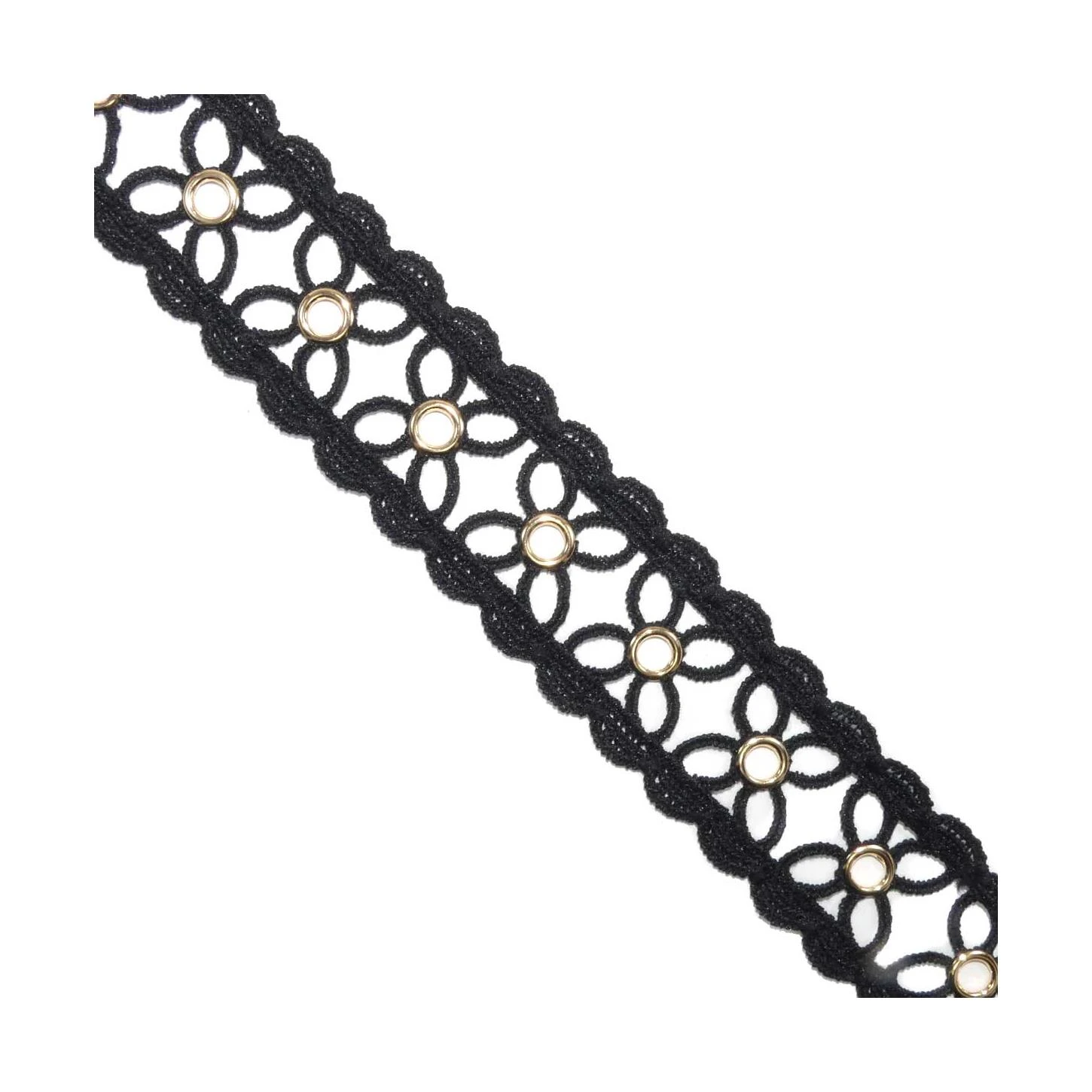 Entredós compuesto por guipur con ojetes dorados interiores.