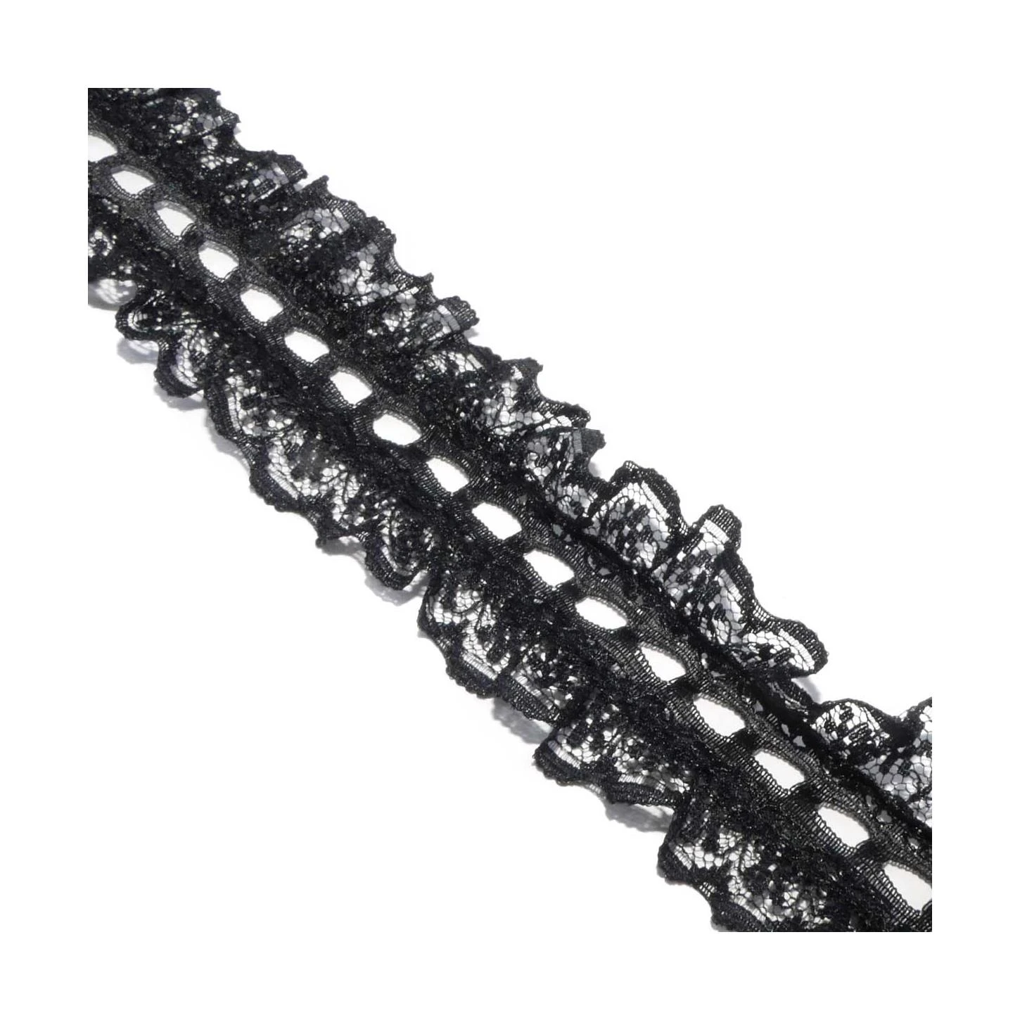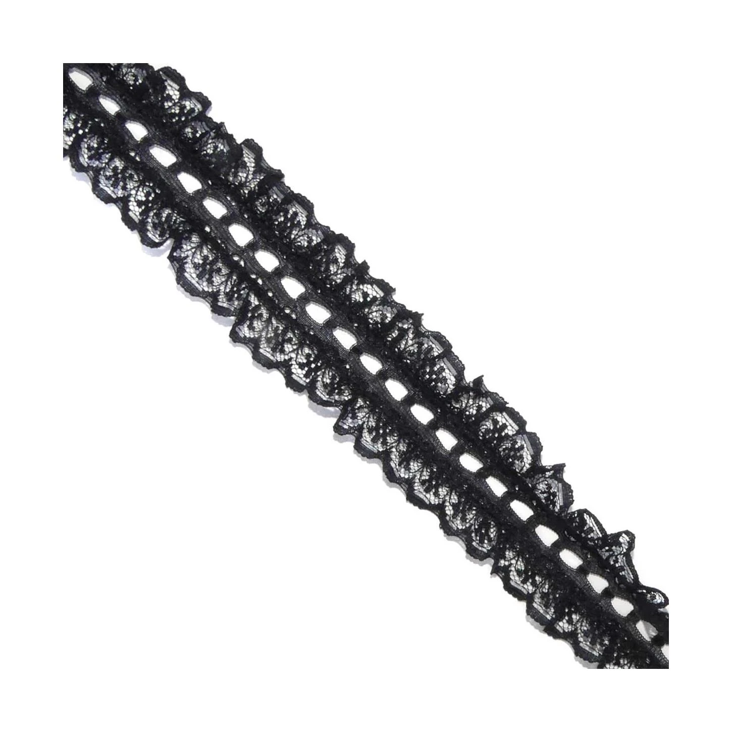 Entredós pasacintas fruncido de 3,5cm de ancho con paso de cinta de 6mm. Puede lavarse sin problemas hasta los 40º, admite plancha y se recomienda no introducir en secadora.
