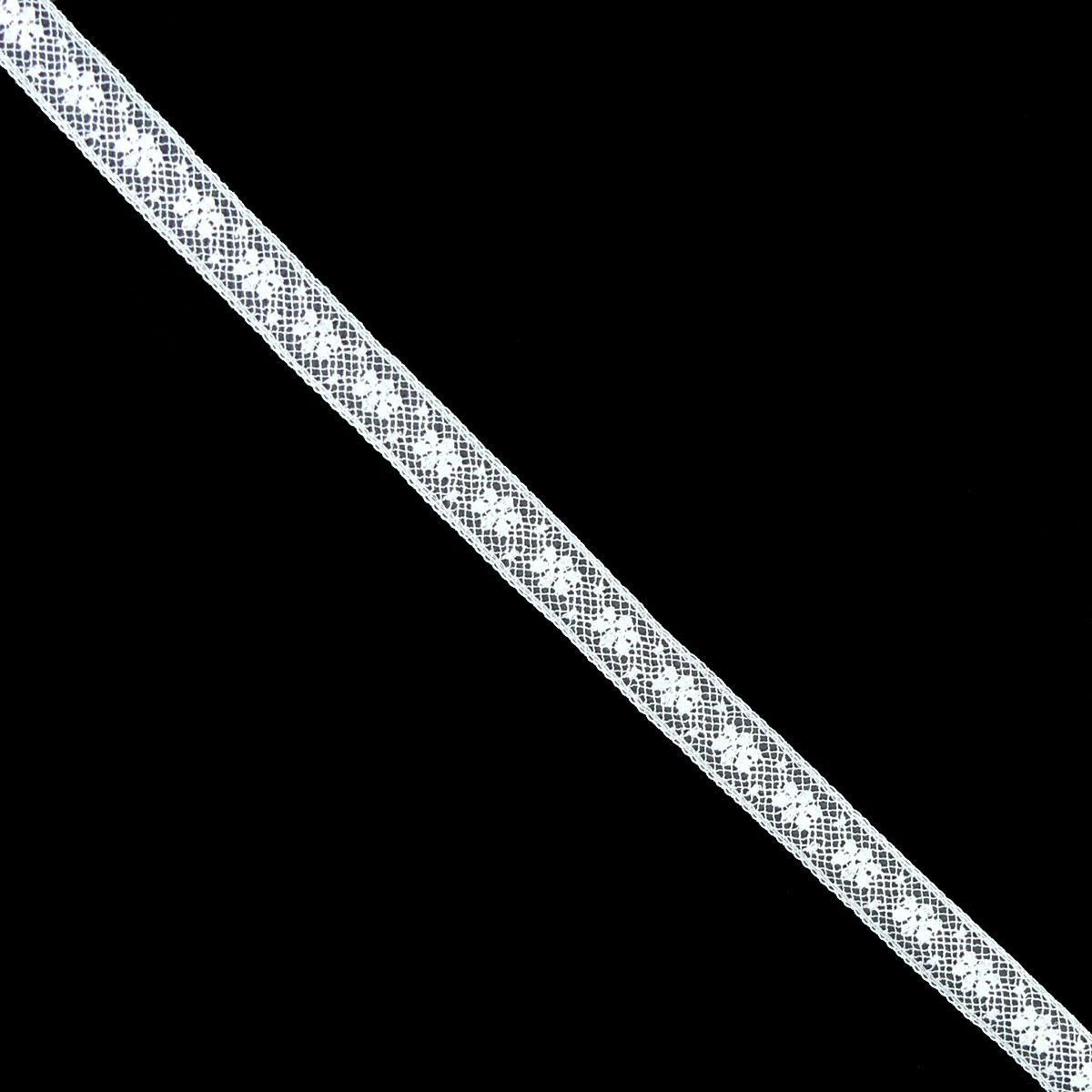 Entredós de valencienne de 1cm de ancho en color blanco, realizado en 100% algodón con tul, flores y acabado recto.