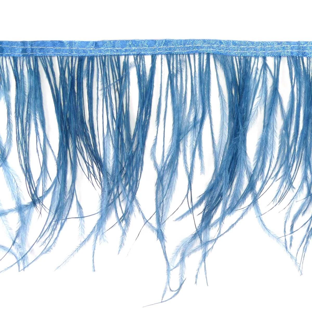Este fleco está hecho con plumas de avestruz de 15cm de media de largo y en su parte superior tiene un pie de raso que te ayudará a coserlo. Puedes dejarlo visto u oculto en el dobladillo.
