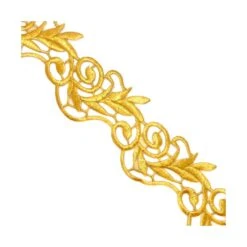 Galón termoadhesivo, bordado con hilo dorado de 6cm de ancho total y diseño clásico de espigas. Para pegar con plancha sin necesidad de coser.