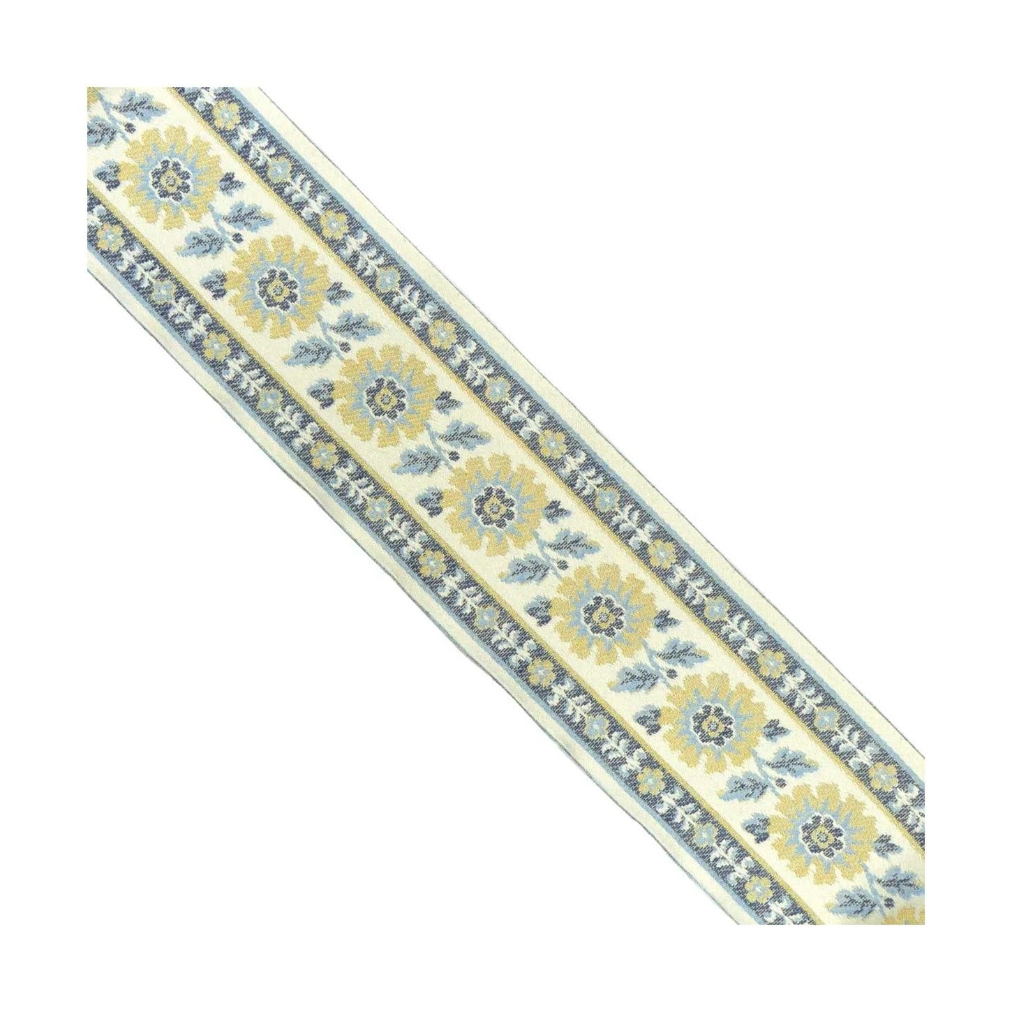 Este galón decorativo esta bordado con un estampado floral en forma de cenefa que otorgará elegancia y sofisticación a tus proyectos de hogar.