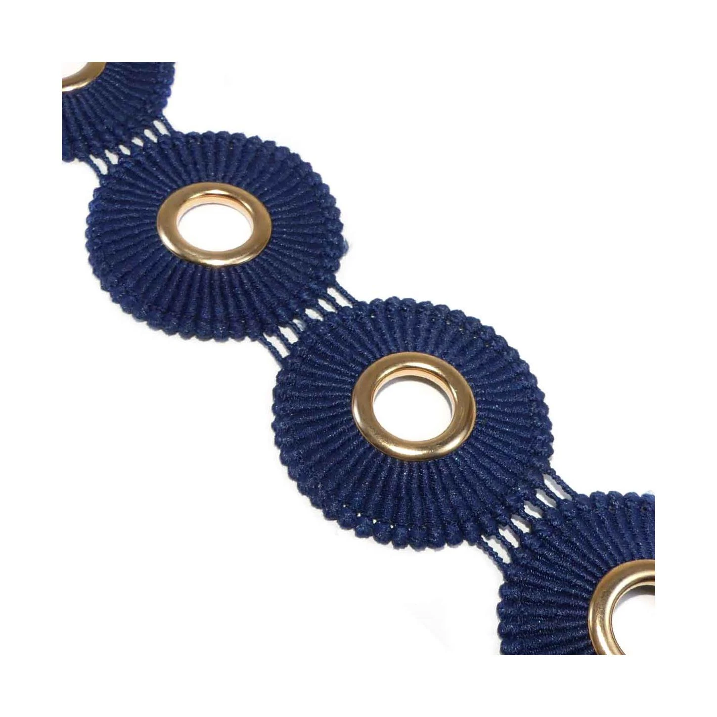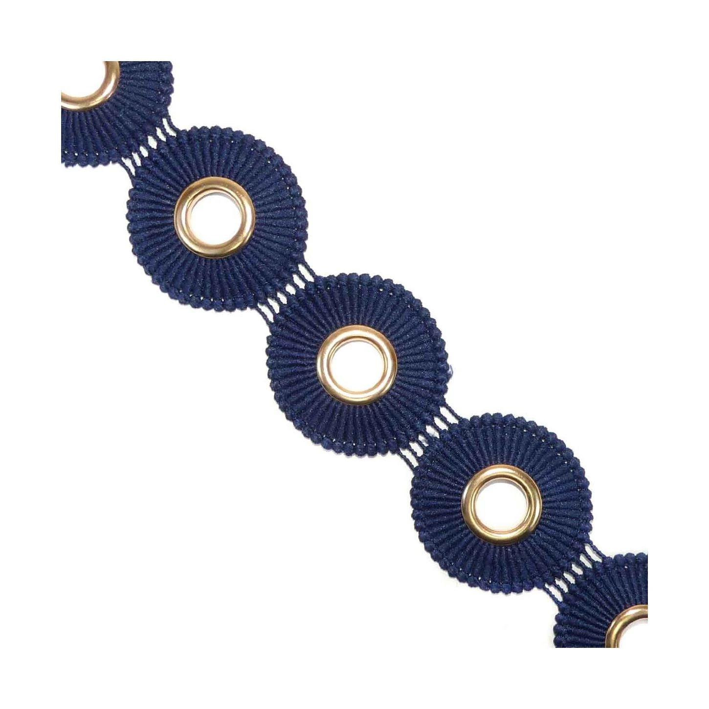 Galón compuesto por entredós de guipur con ollao dorado interior de 1,5cm de diámetro.