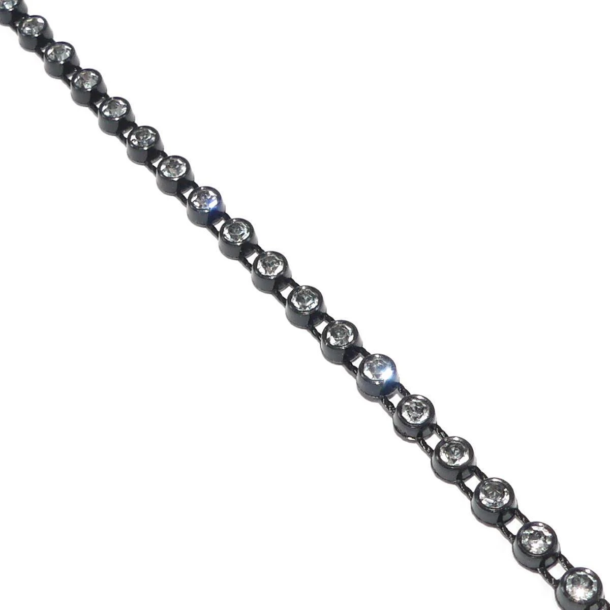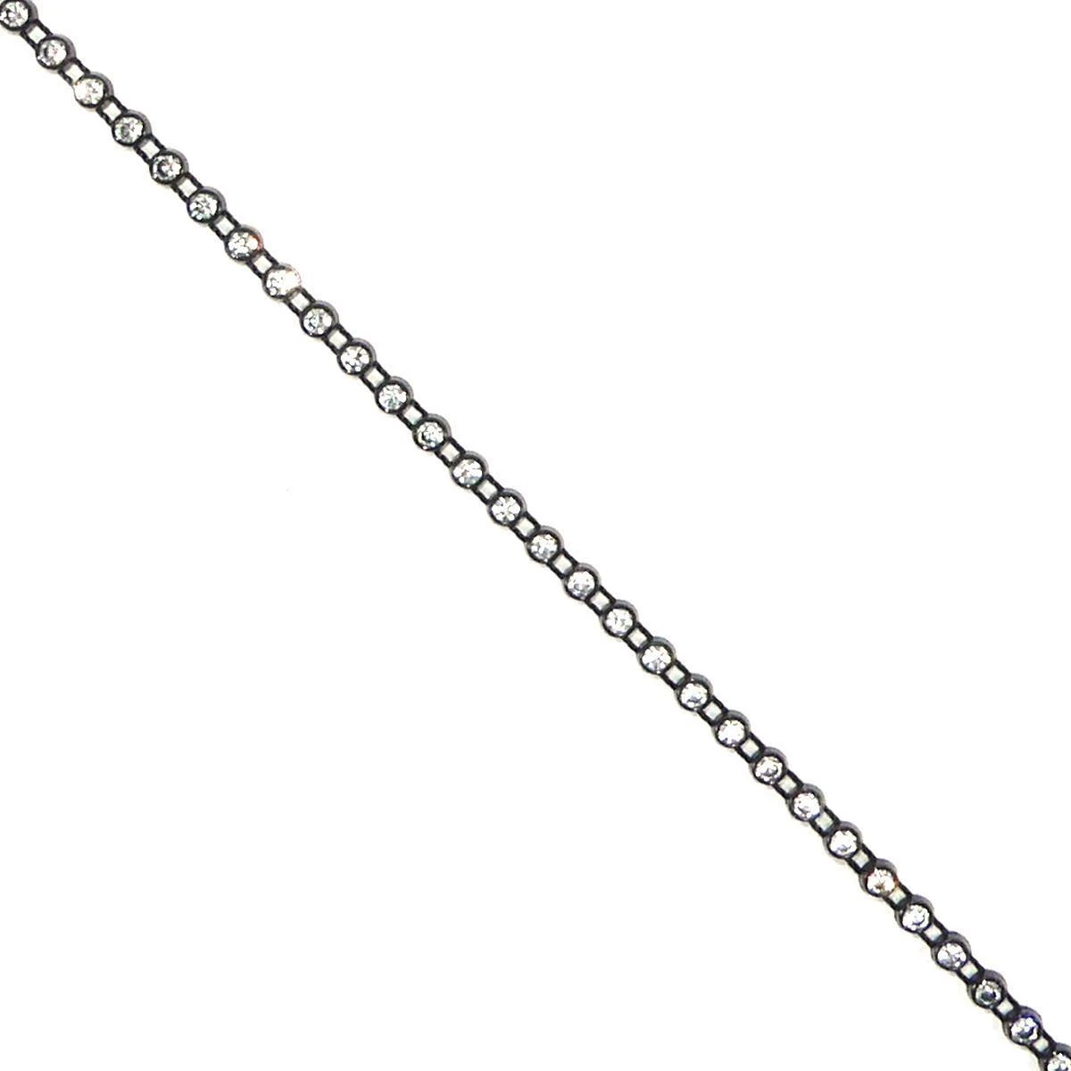 Pasamanería de strass en una sola fila dispuesta para coser. Base plástica en negro y cristal blanco. Ancho 4mm.