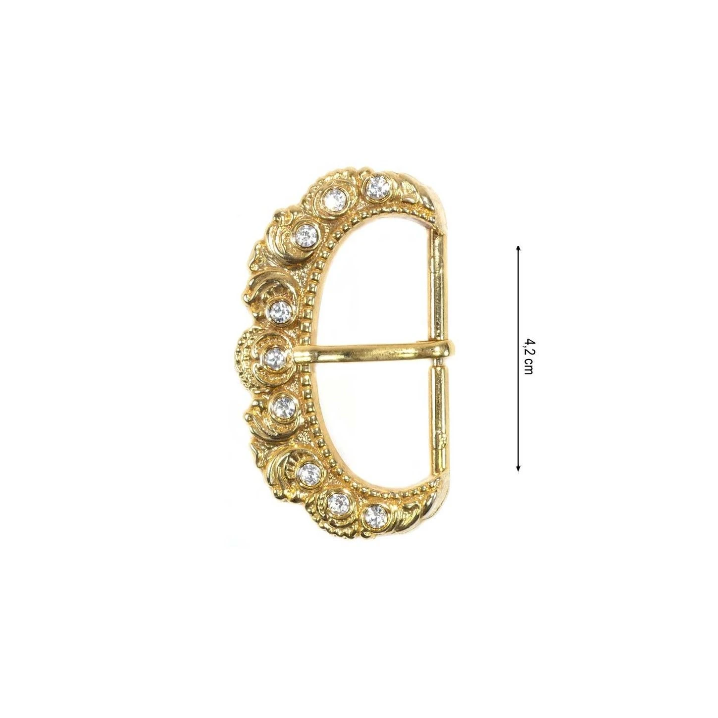 Esta hebilla metálica de color oro con estilo rococó incluye a lo largo de todo su diseño strass o pequeños cristales que consiguen dar ese efecto de brillo que buscas, pero manteniendo el estilo rococó que tanto cautiva.