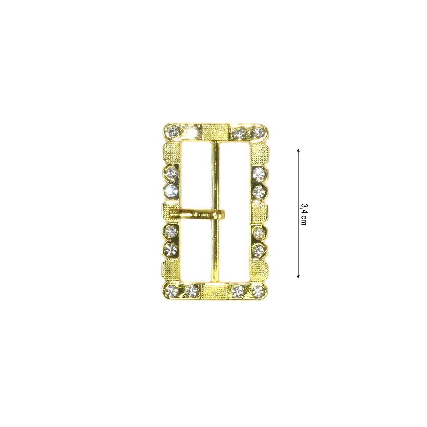 Esta hebilla metálica con forma rectangular incluye en su diseño strass o pequeños cristales que consiguen dar un efecto único en ella.