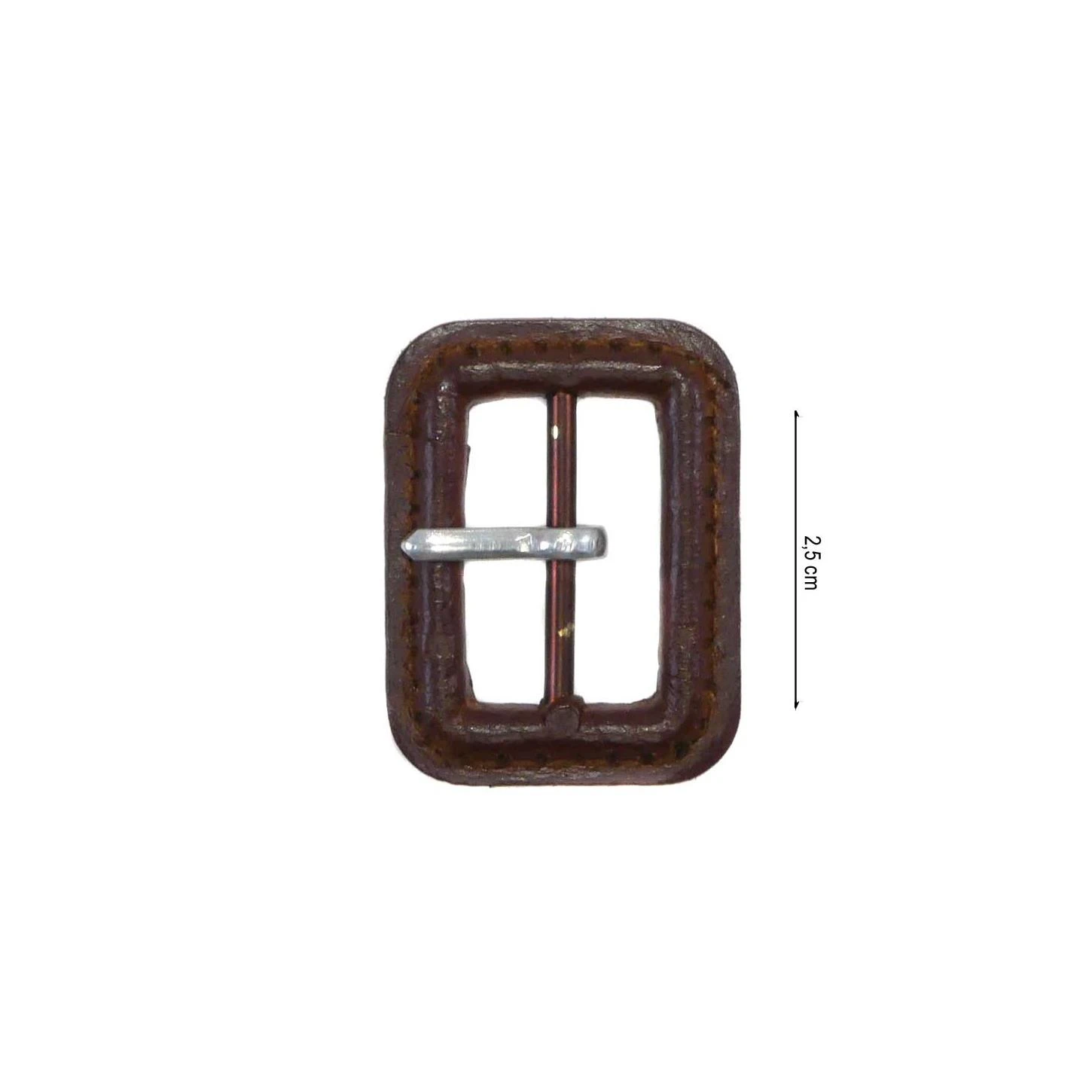 Hebilla de piel rectangular con diseño clásico y bordes biselados en color marrón oscuro y de 2,5cm de paso de cinta.