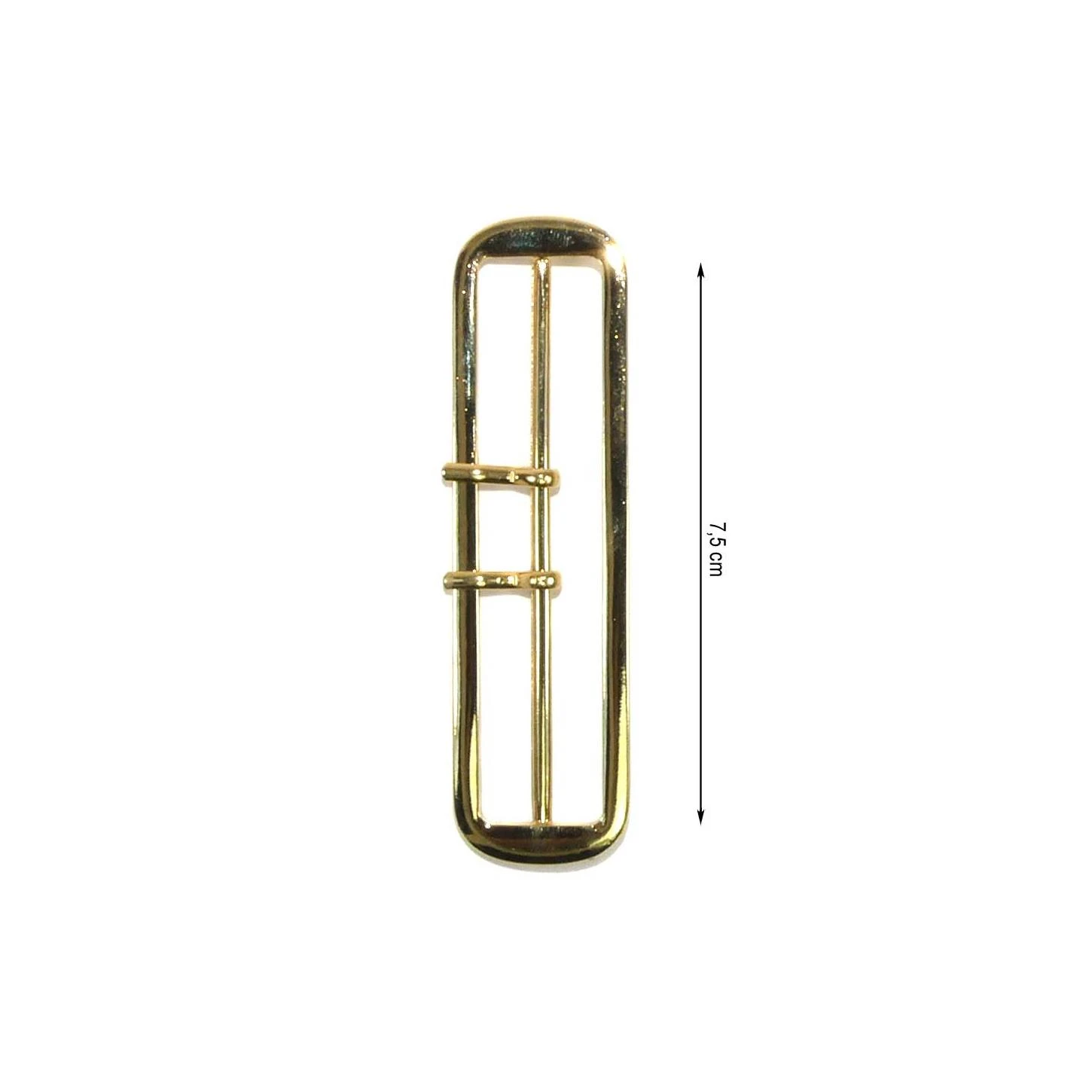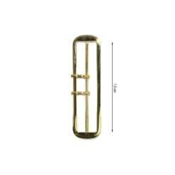 Hebilla metálica rectangular con cantos redondeados y doble pala de 7,5cm de paso para la cinta. Disponible en color dorado.